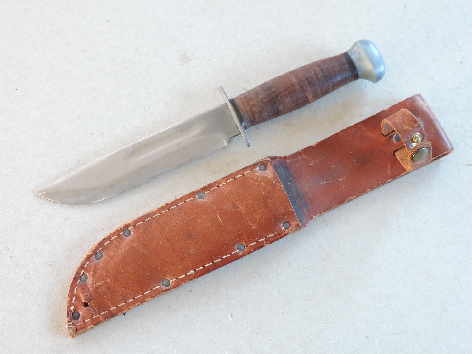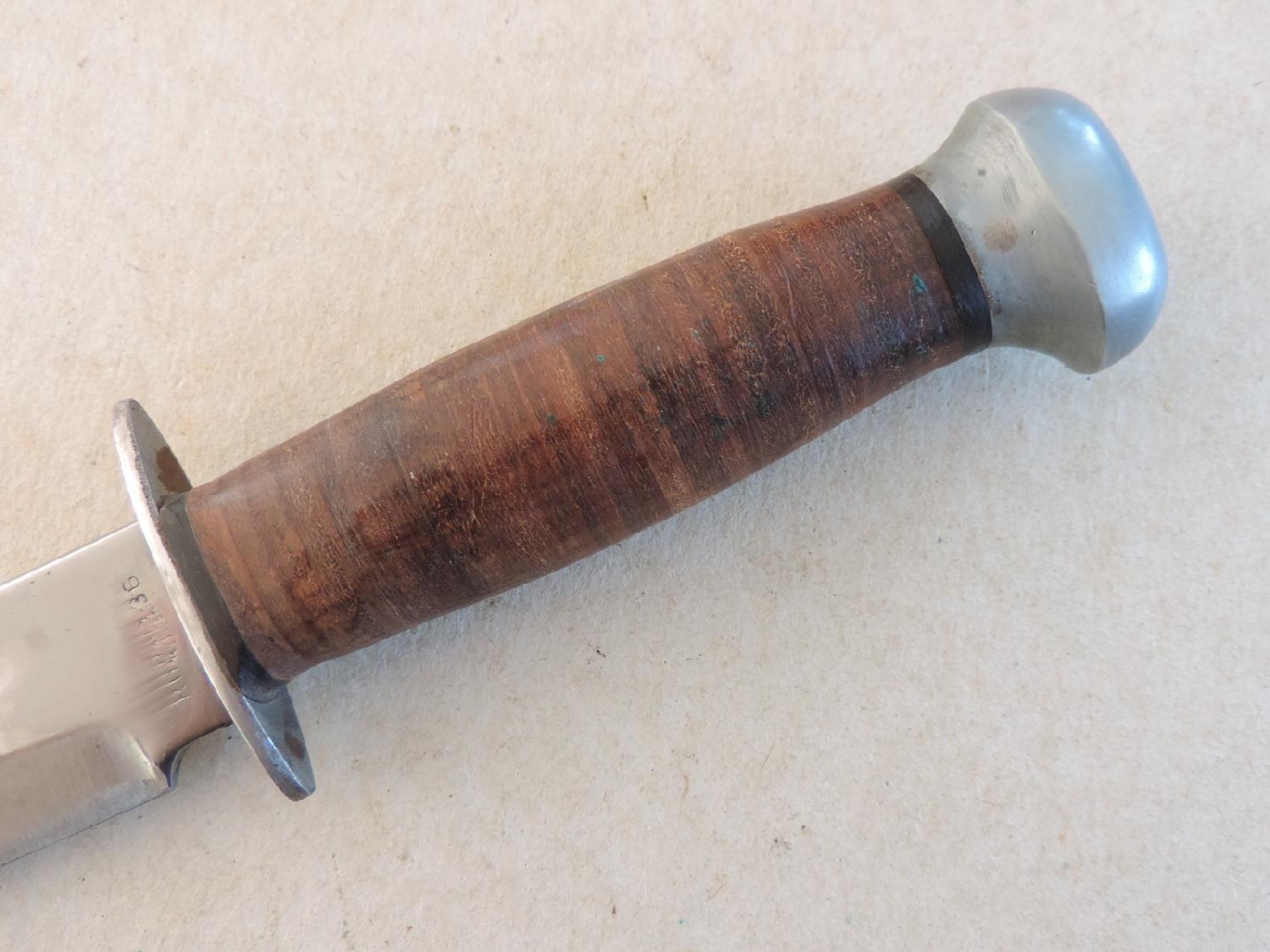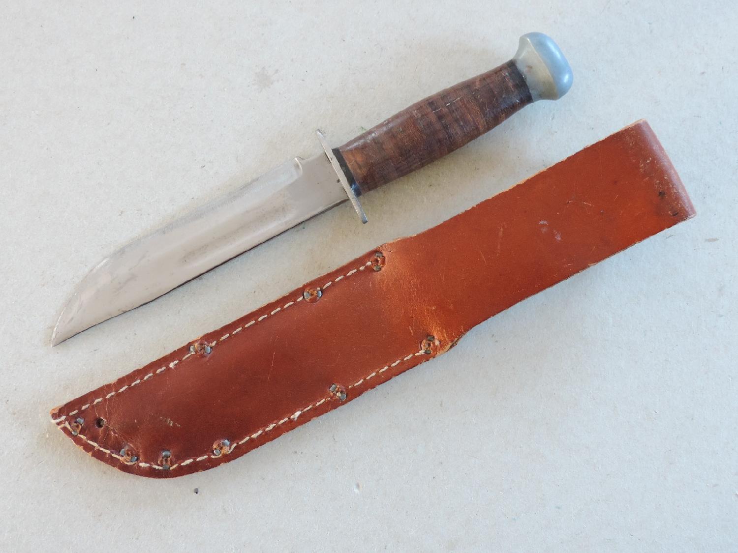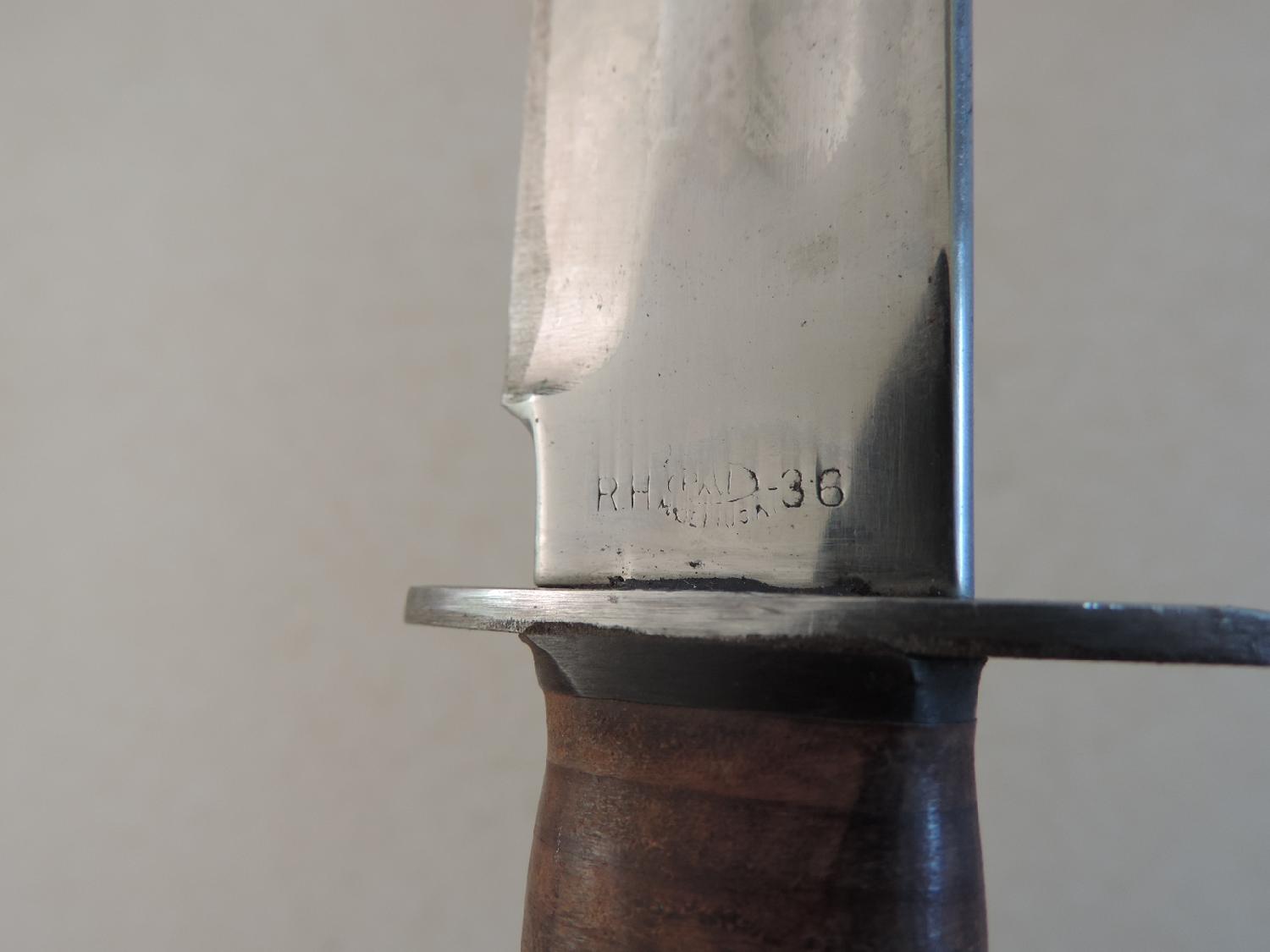 Couteau RH PAL 36 avec son fourreau cuir d'origine, modèle à 9 rivets. Ensemble US WW2. Autres photos dispos. Frais de port à définir.
