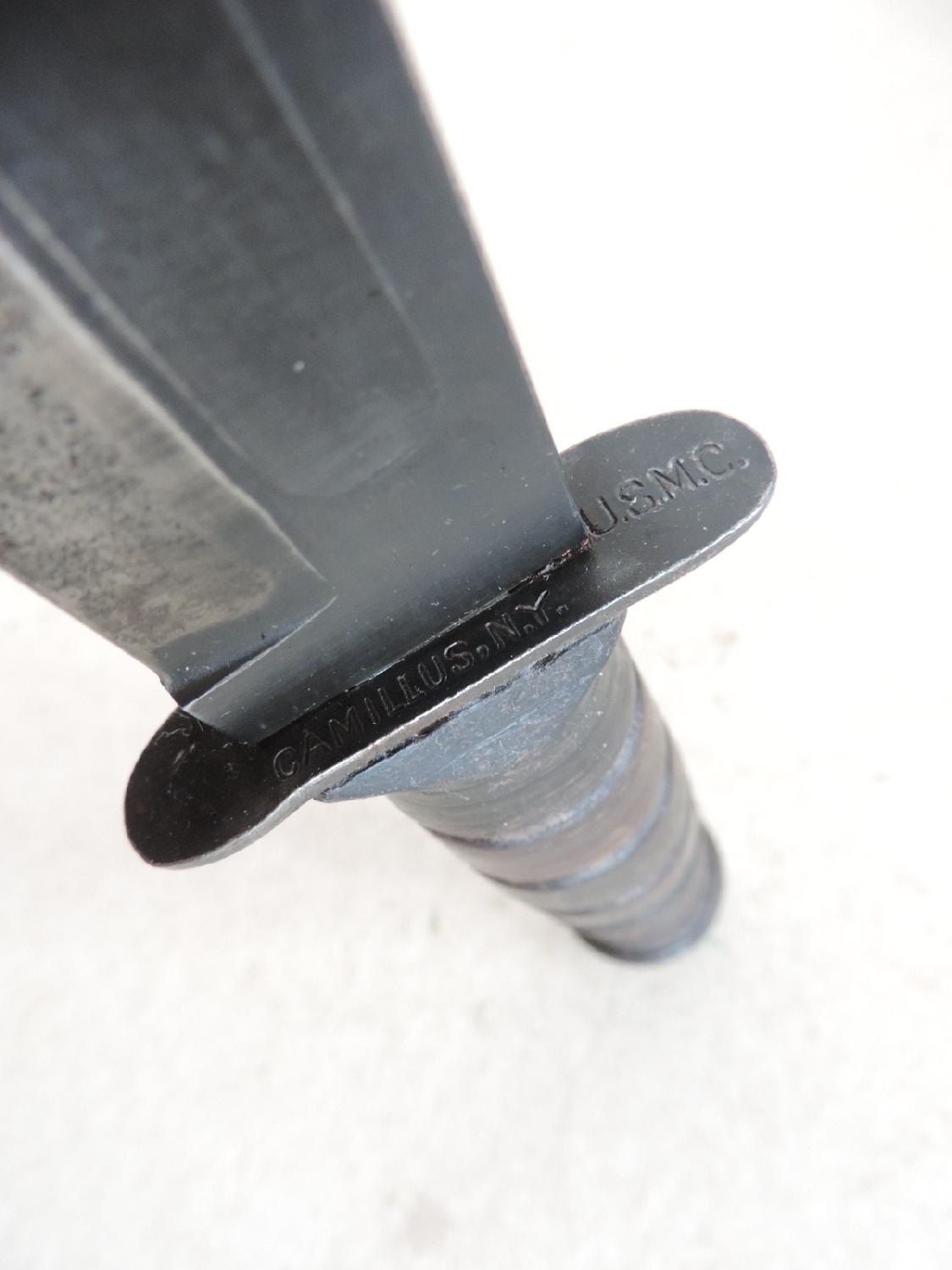 Camillus USMC Fighting Knife marquage garde avec fourreau BoyT, ensemble US WW2. Dossier photos et descriptif dispo. Frais de port à définir.