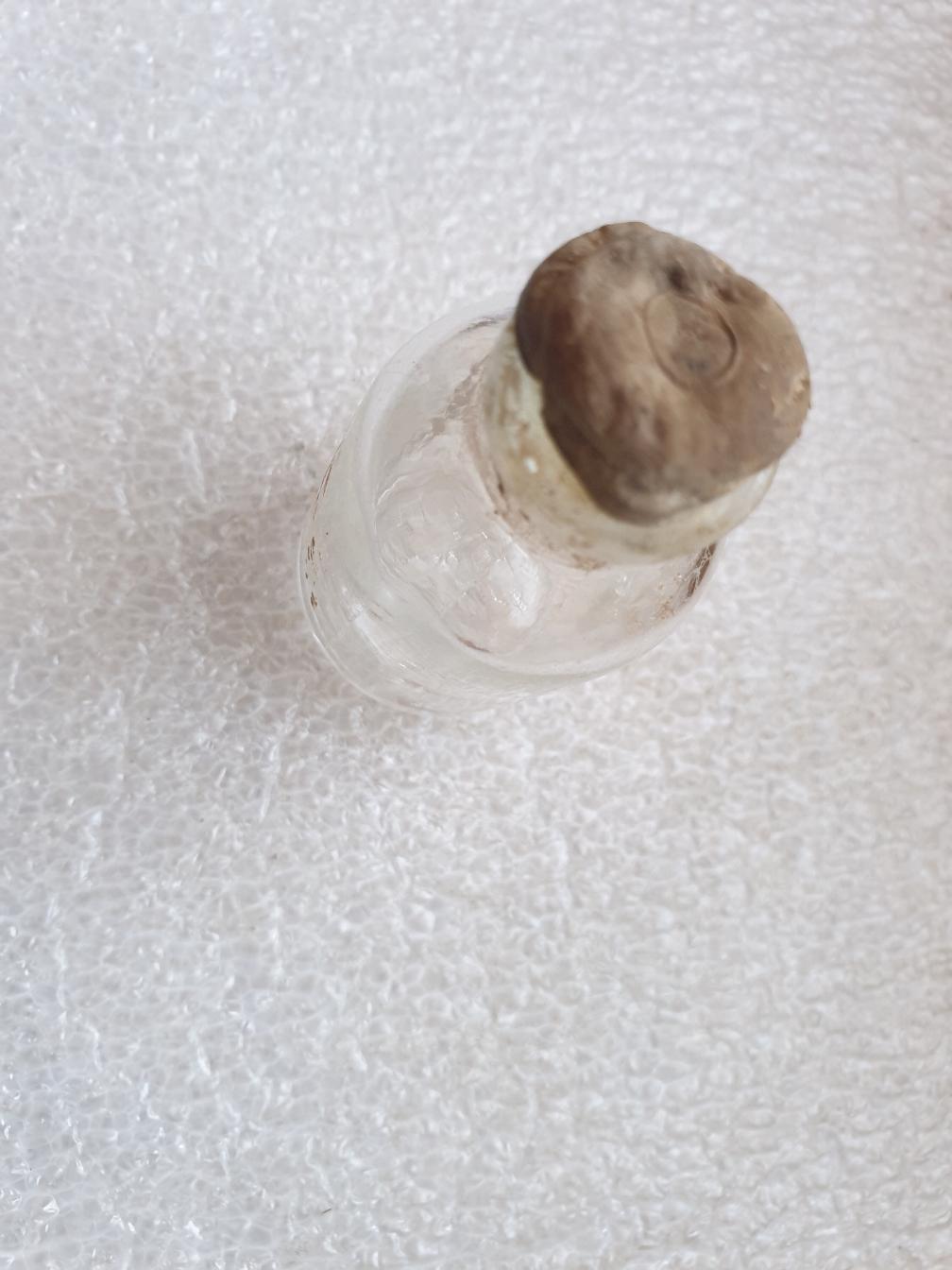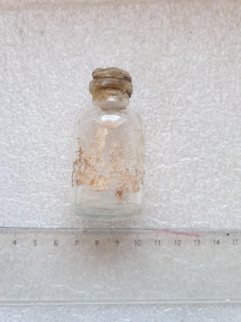 Fiole d'injection produit médical US WW2. Provenance combat Meuthe et Moselle 1944. Hauteur 6,5cm / diamètre 3 cm.