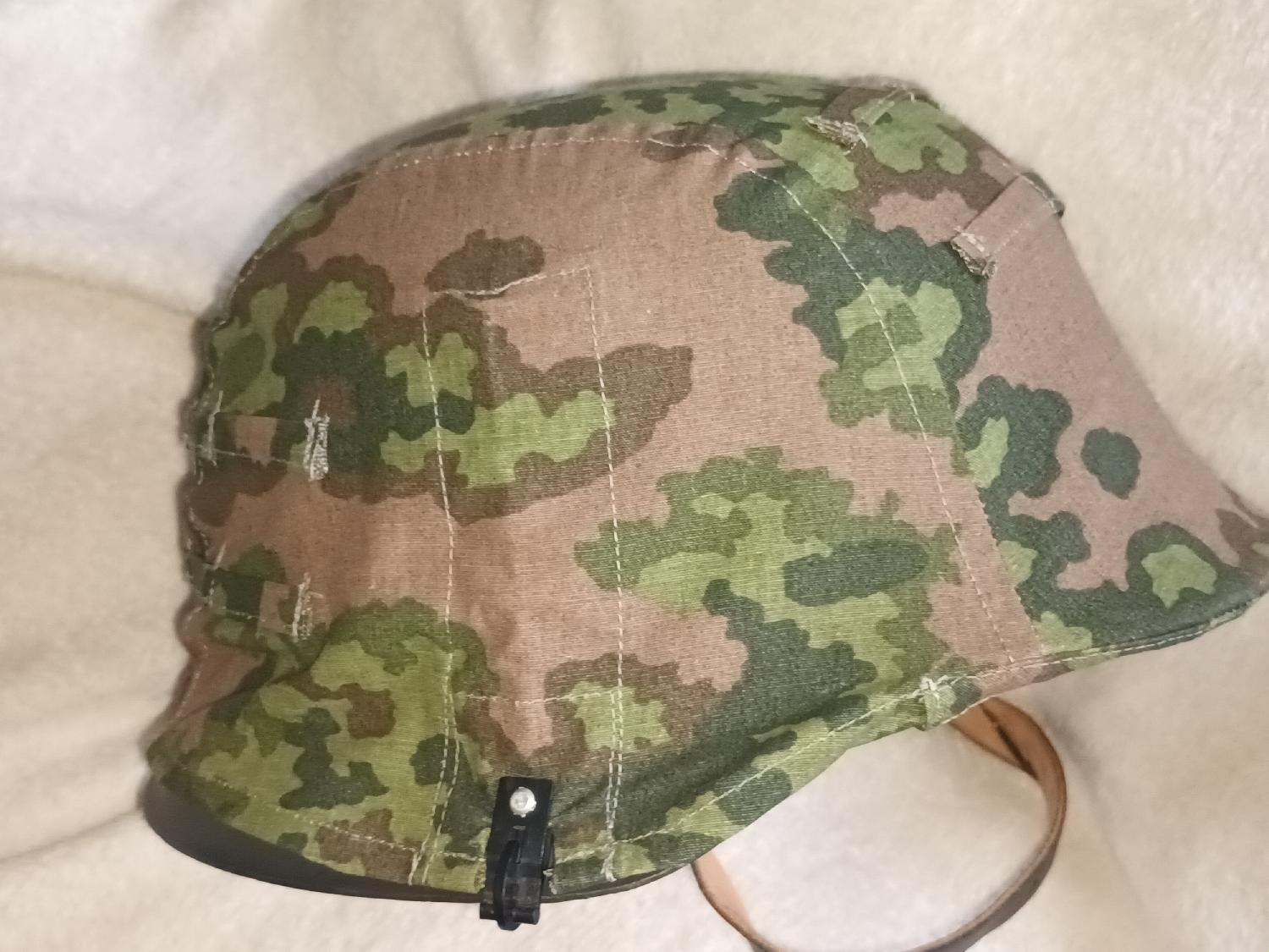 Très beau M42 ET 64 complet avec insigne et housse réversible waffen. Coque d'origine parfaitement restaurée avec un intérieur de qualité ainsi que la jugulaire. Légèrement patiné cet ensemble est parfait pour reconstitutions ou pour mannequin. Le réalisme est parfait.