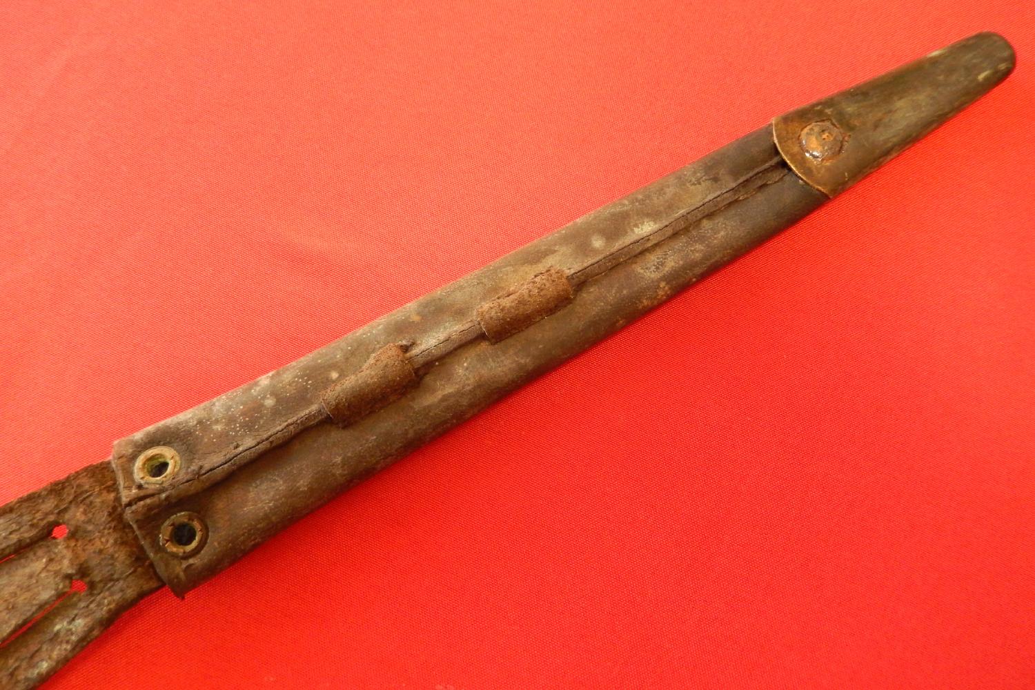 avec rivets oeillets percées (les rivets pleins sont tous après ww2) sorti de grenier ,elastique fragile ,pattes coupées ,cuir en bon état un peu rigide a la partie lame paypal +mondial relay3,90 € en locker