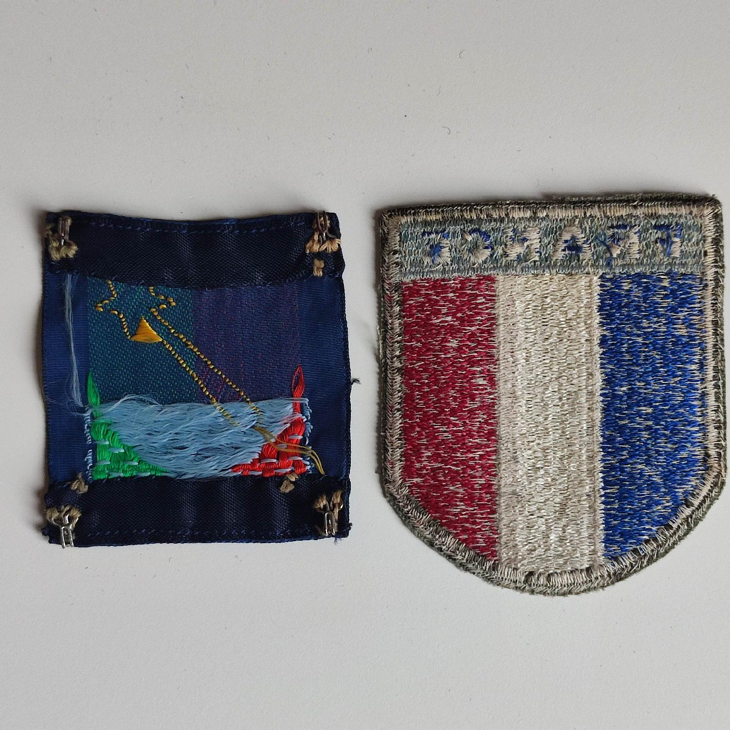 Lot de 2 insignes tissus FRANCE (Fabrication US) et RHIN ET DANUBE. Période 1943 – 1945. Prix 45 euros le lot. Port et emballage 5 euros par Mondial Relay France.