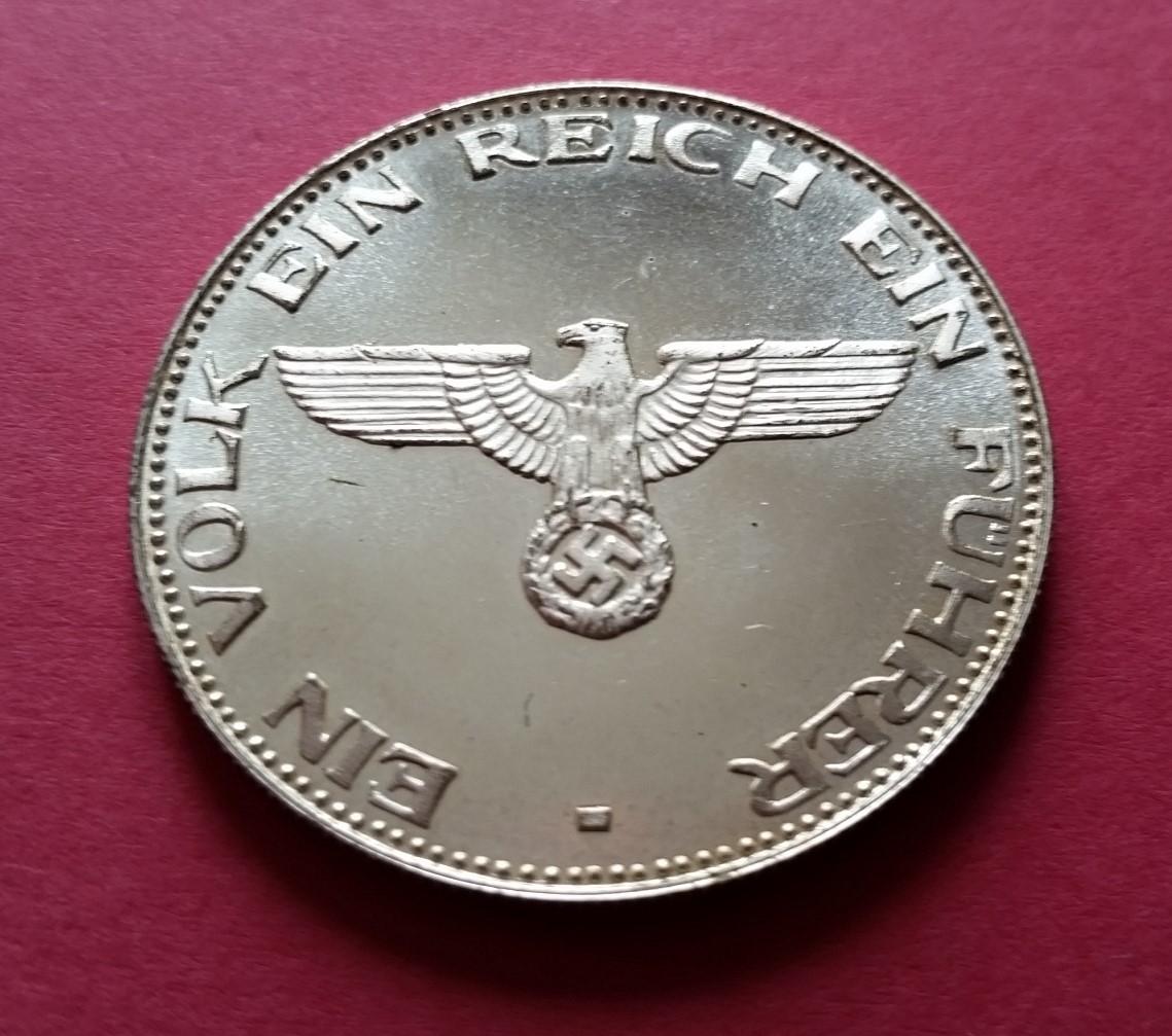 Médaillon en métal argenté à l'effigie d'Adolf Hitler « Ein Volk, Ein Reich, Ein Führer »