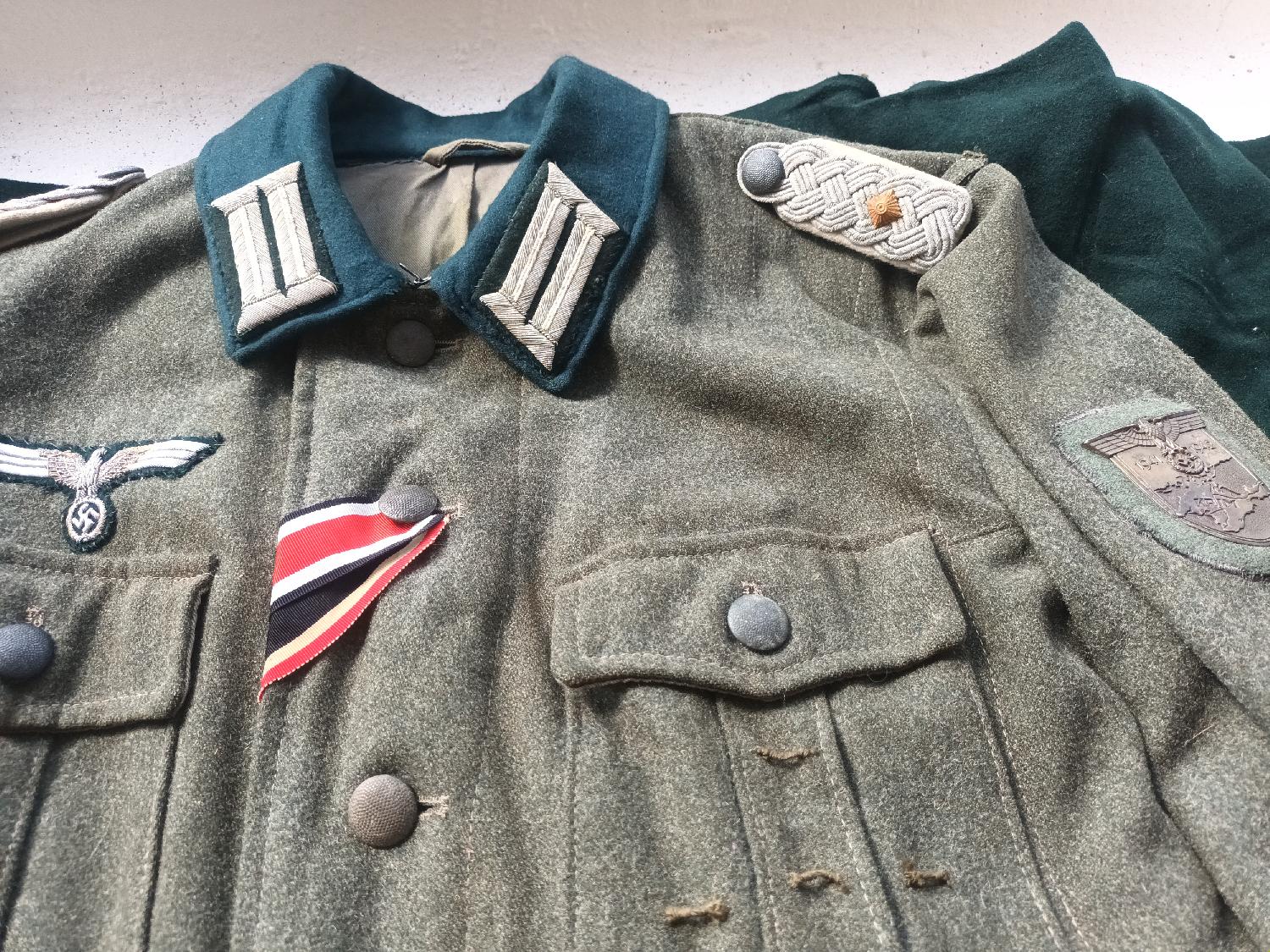 Belle veste taille Petit XL d'un officier infanterie avec bonnes pattes de col et aigle ainsi que ruban et plaque avec les boutons. Super rendu pour un prix abordable et très réaliste. Veste très ancienne repro usée nominative qui fera illusion sur votre mannequin ou en reconstitution historique. Payable avec PayPal de préférence entre proche.