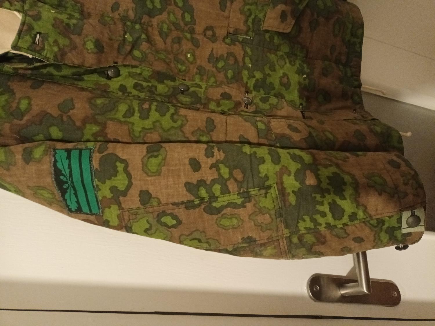 Très belle parka réversible avec marque de grade à la manche droite. Camouflage printemps parfaitement conforme à l'original.