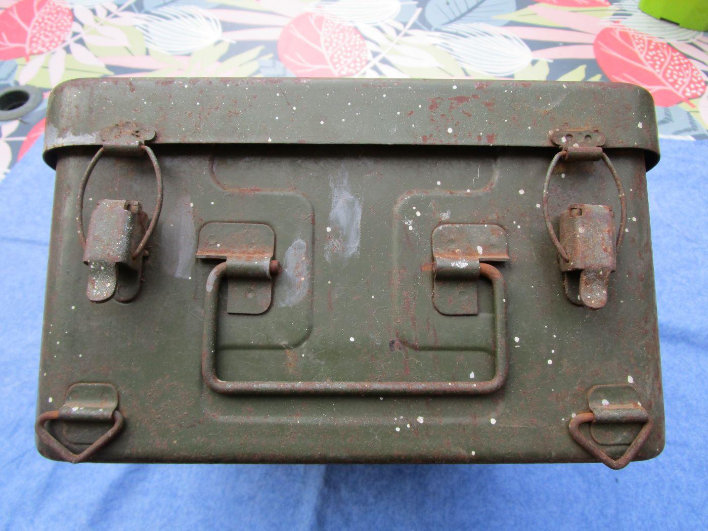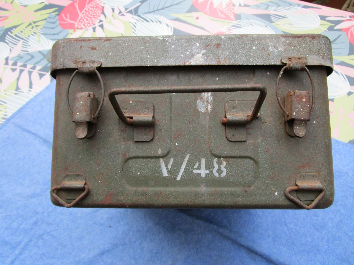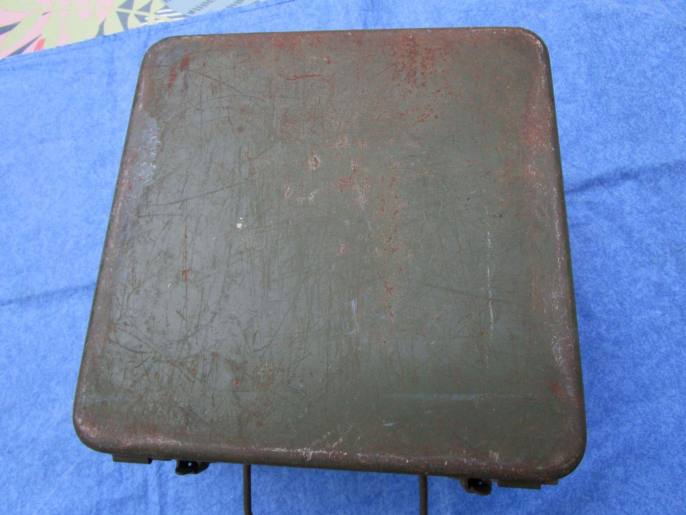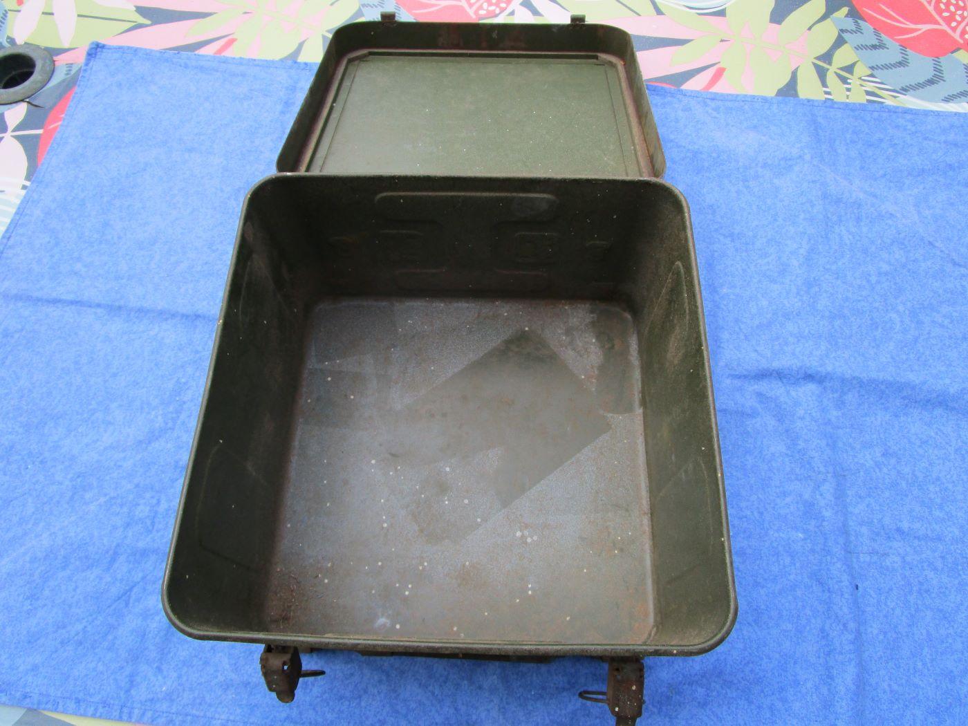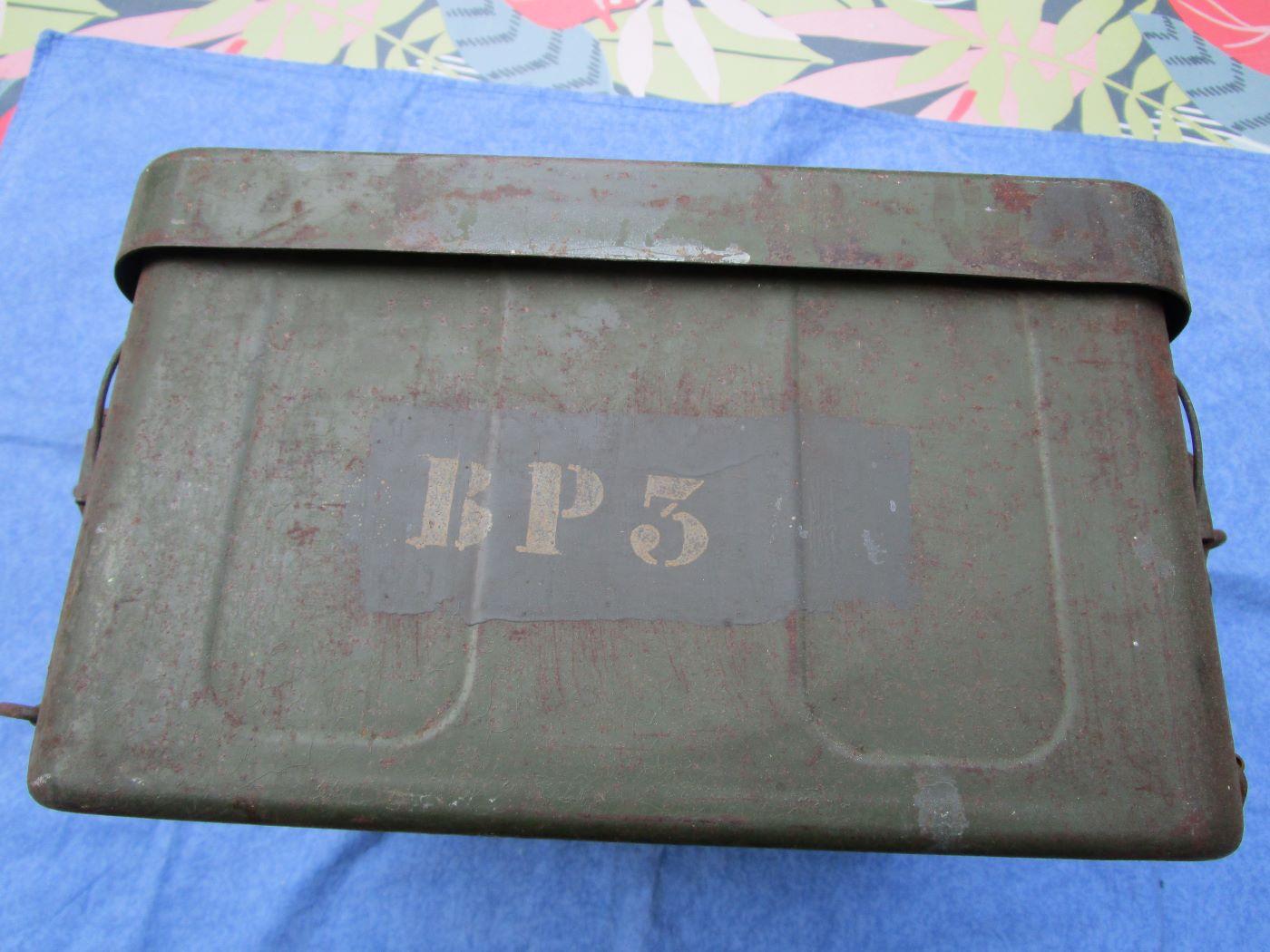 Trousse/caisse de campagne pour médecin. Peinture et marquages d'origines. C'est le 1er modèle 48 sans les renforts du couvercle. Pochoirs "BP3" et armée de l'air avec croix rouge. 4 crochet pour la fixation au véhicule de transport. Traces de projections de peinture (voir photos). Prévoir 17.40 euros en colissimo ou 13 euros par mondial relay. Autres photos sur demande.