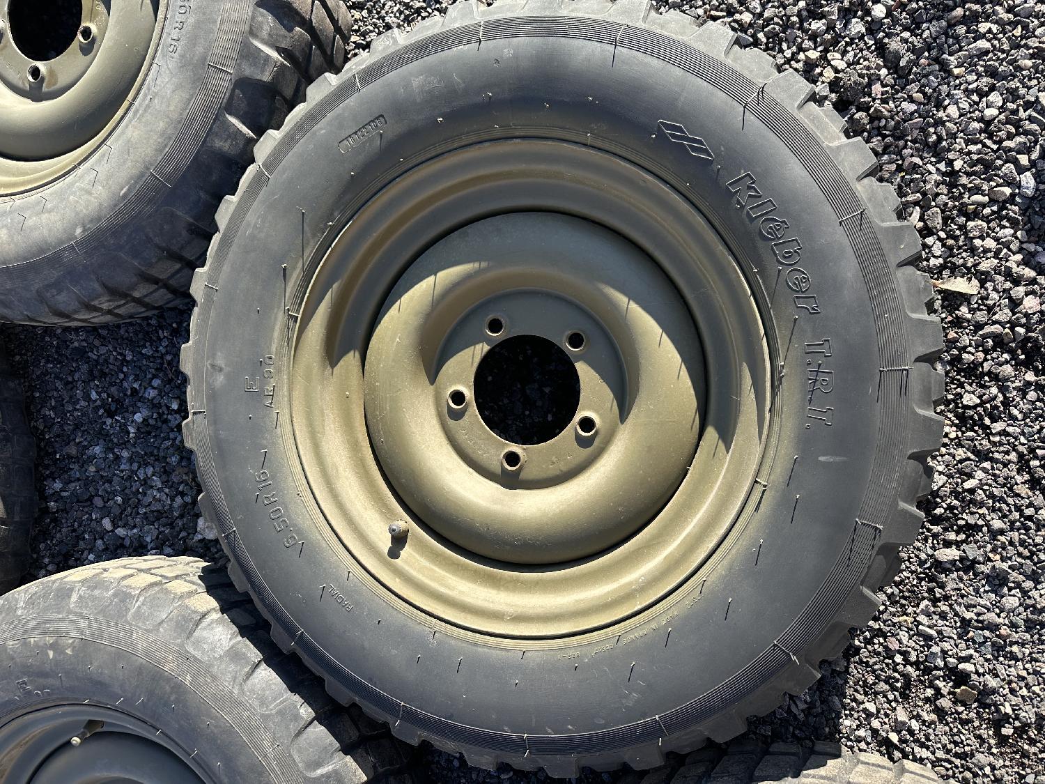 Bonjour, je me sépare de cinq jantes / roues de Jeep Willys en parfait état avec 5 pneus Kléber TRT en bon état, je dirais avec 40 % d’usure. Il s’agit des mêmes jantes que les modèles des Jeep Willys précoce dites early donc pas les jantes combats à écrou . Il s’agit de la même dimension de jante avec les roues avec les pneus military 600/16 Possibilité de vendre 1 roue seule 100€ pour la roue de secours avec le pneu quasi neuf ayant encore les témoins d’usure Si vous achetez une roue neuve avec pneu chez pro , le prix est de 280€ l’ensemble pour une roue