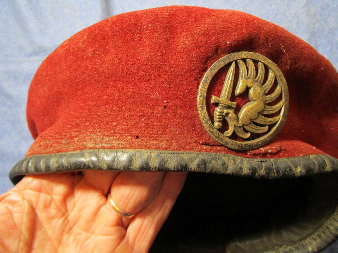 Taille 53, fabricant "A.CROSNIER". Insigne para métro, Drago rue de Romainville. Drap avec petites léchures de mites au niveau de l'insigne et 2 entailles symétriques de 1 cm à droite de l'insigne (utilisation inconnue). La toile noire intérieur est absente au niveau de l'épingle de l'insigne. Cordon absent. Trouvé au même endroit que le poignard que j'ai mis en vente précédemment. Autres photos sur demande. Prévoir 9.30 euros en colissimo ou 5.70 euros par mondial relay.