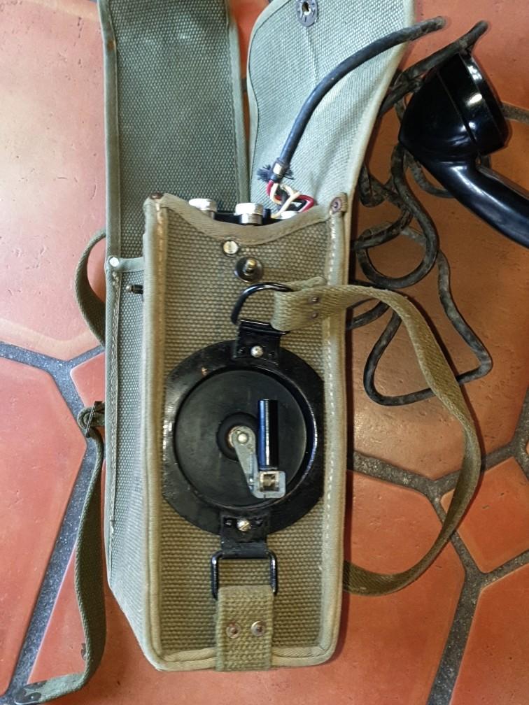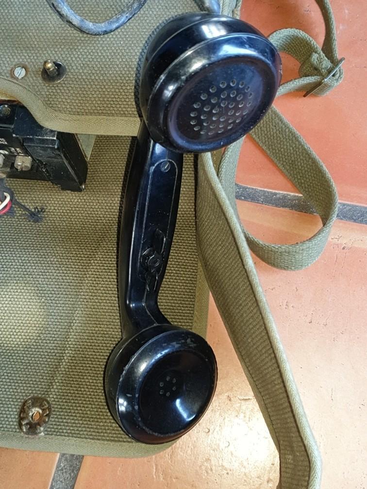 Téléphone de campagne armée française EE8. Appareil de collection, non testé composé d'un combiné, d'un boîtier et de son sac de transport. Devait fonctionner avec 2 piles LR20. Dimensions : 25 x 20 x 10 cm, poids : 4,100 kg. Ensemble propre, frais de port à prévoir en mondial relay.