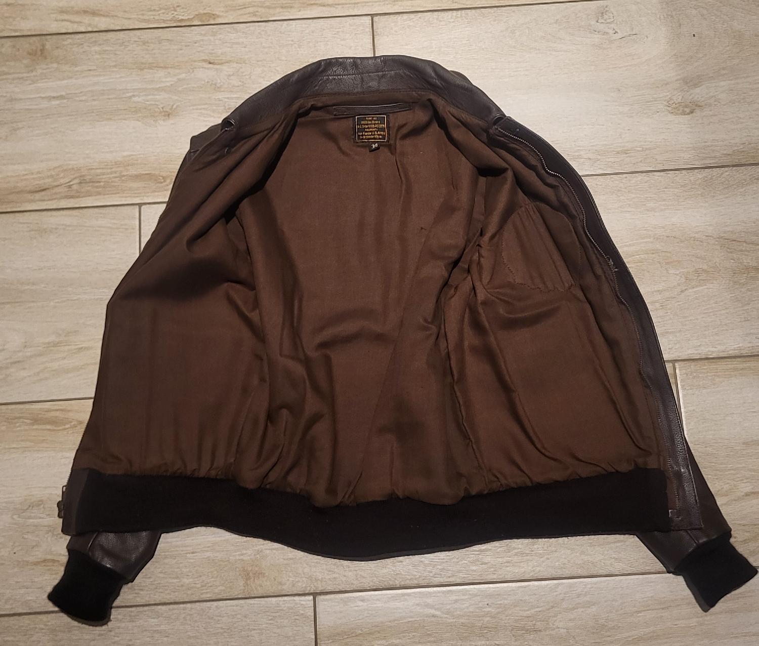Je vends cette superbe reproduction de blouson A2 de chez QMI, en cuir de vache.