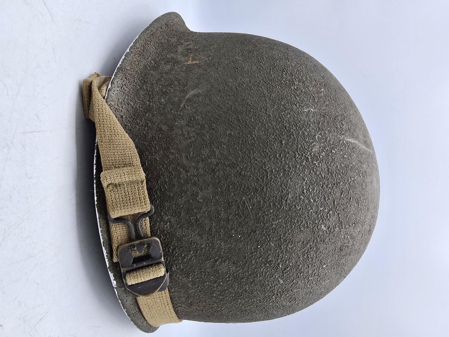 Magnifique et peux commune coque de casque US M1 en très belle état. Fabrication ultra précoce de janvier 1942. Jugulaire avec boucle de M1917A1. Superbe pièce.