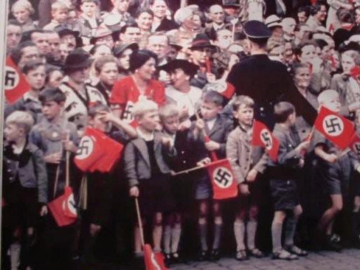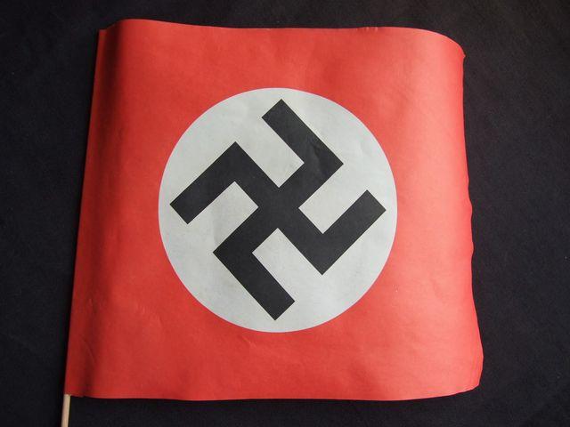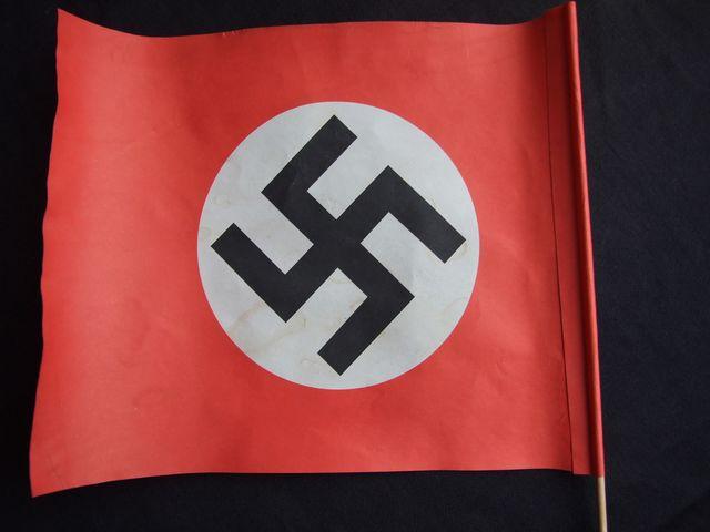 Drapeau en papier collé sur manche en bois. Dimensions 21 x 17 cm