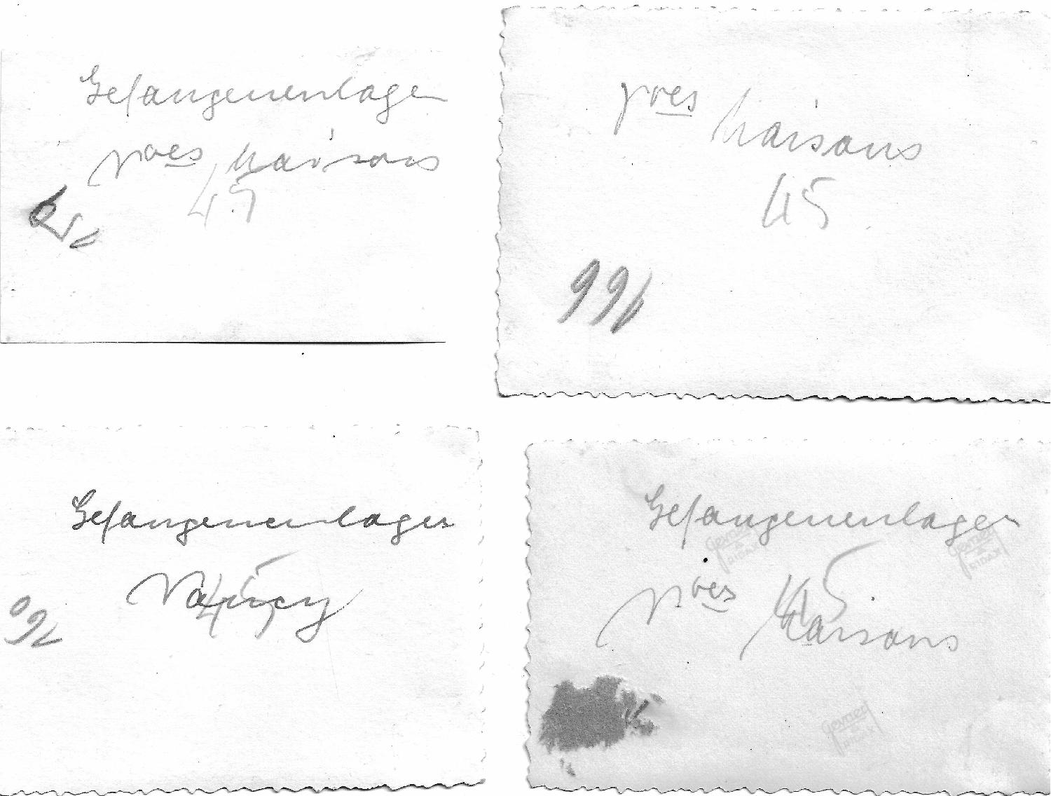 4 Photos WW2 originales (3 avec inscription au dot Gefangenenlager Nves Maisons & une Gefangenenlager Nancy )