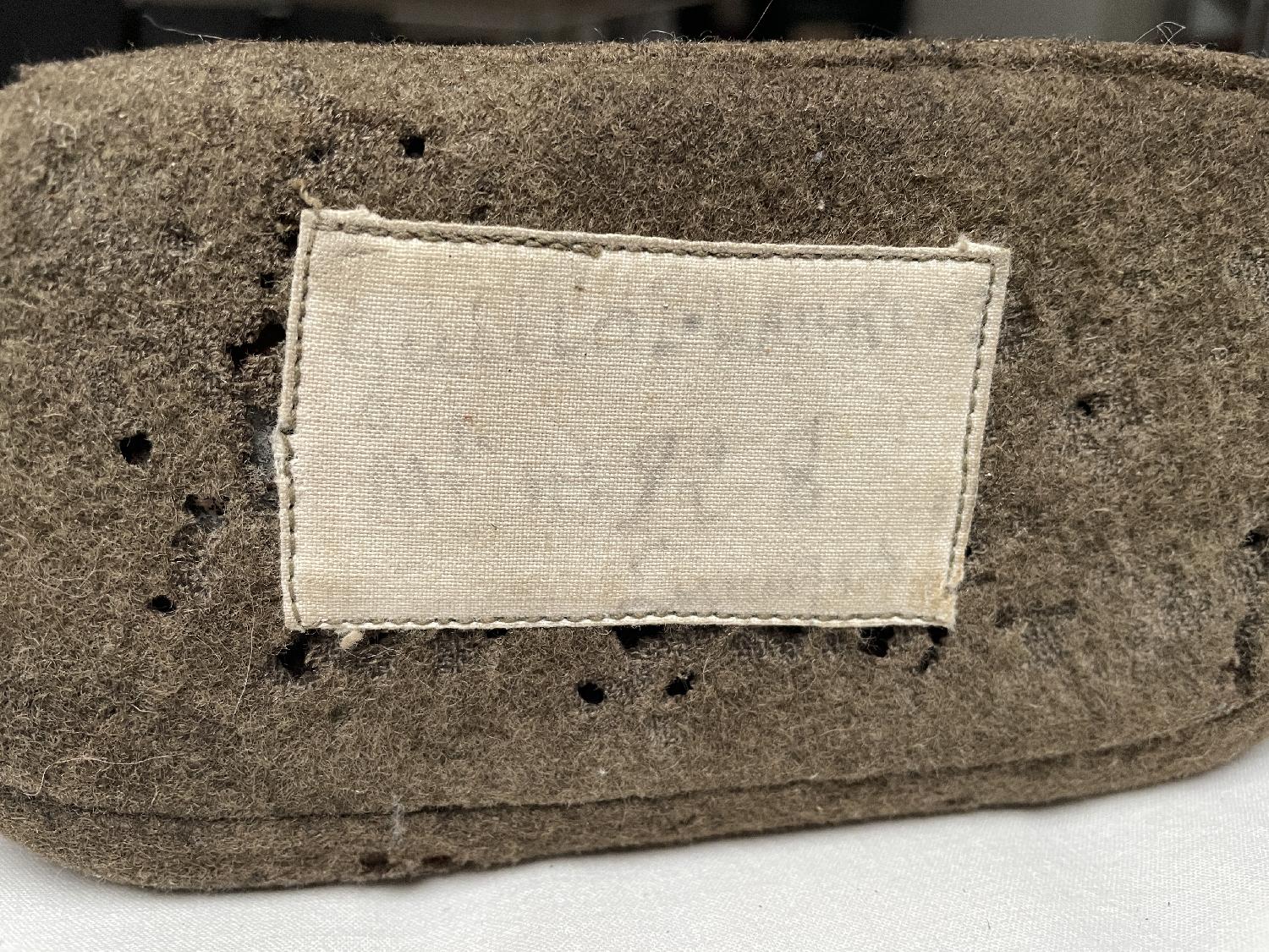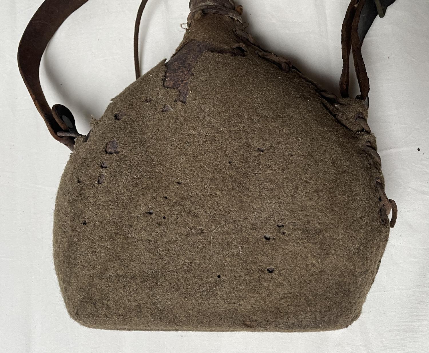 Bidon mdl35 housse feutre, multiple troues et oxydation, nominatif au nom de “Guillot Laurent matricule 928”.