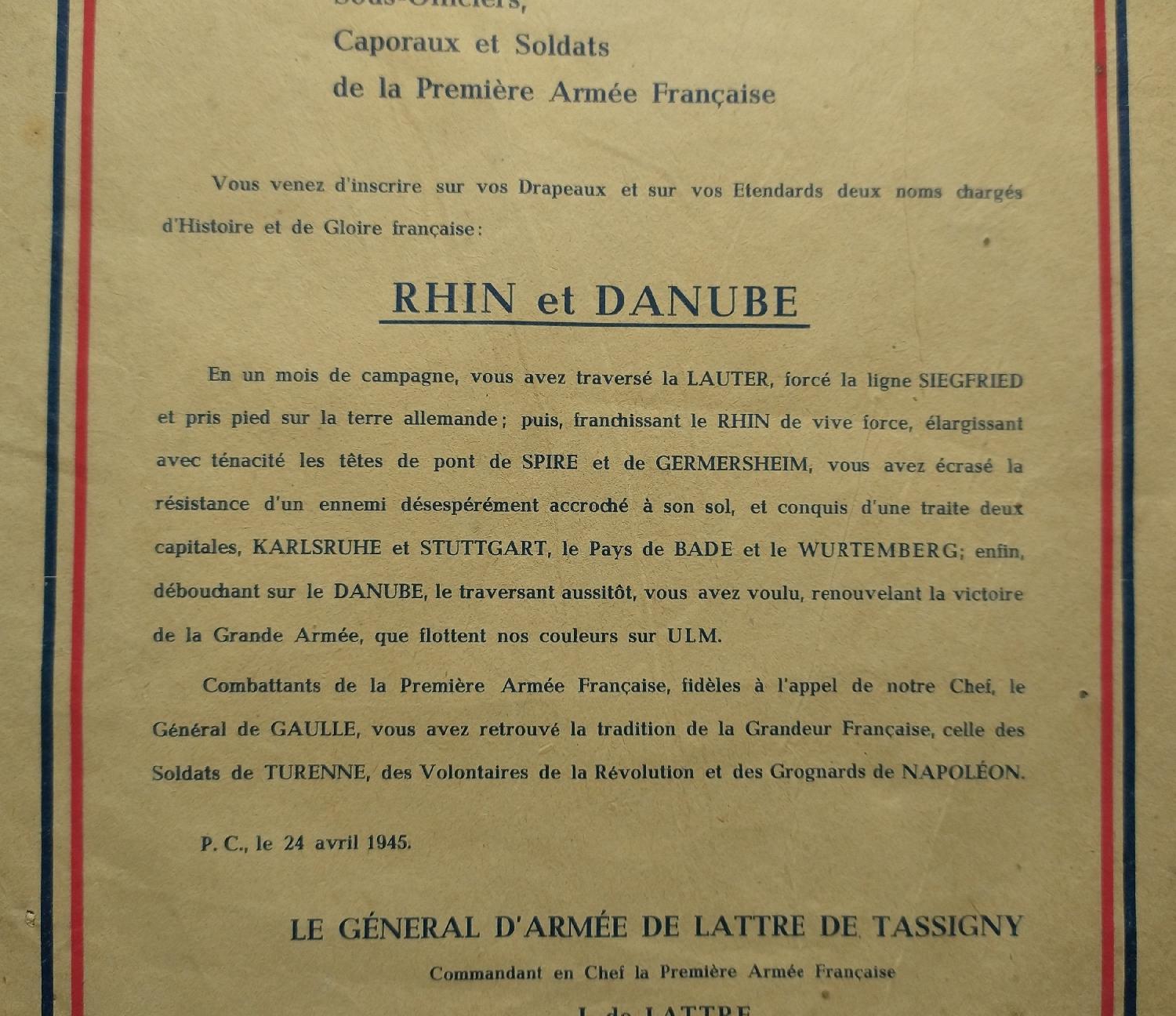 Ordre du jour 1ére Armée
