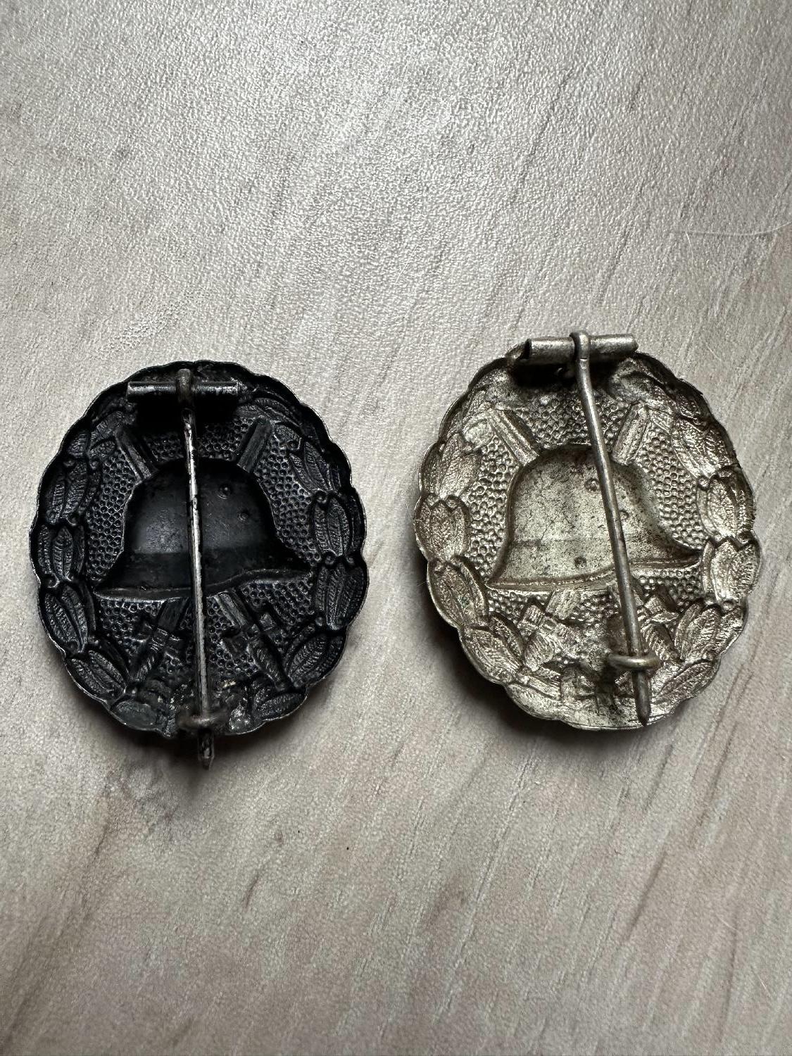 Je me sépare de ces deux médailles de blessés modèle bronze et argent ww1, bien sûr originales et.locale Vosges Alsace.