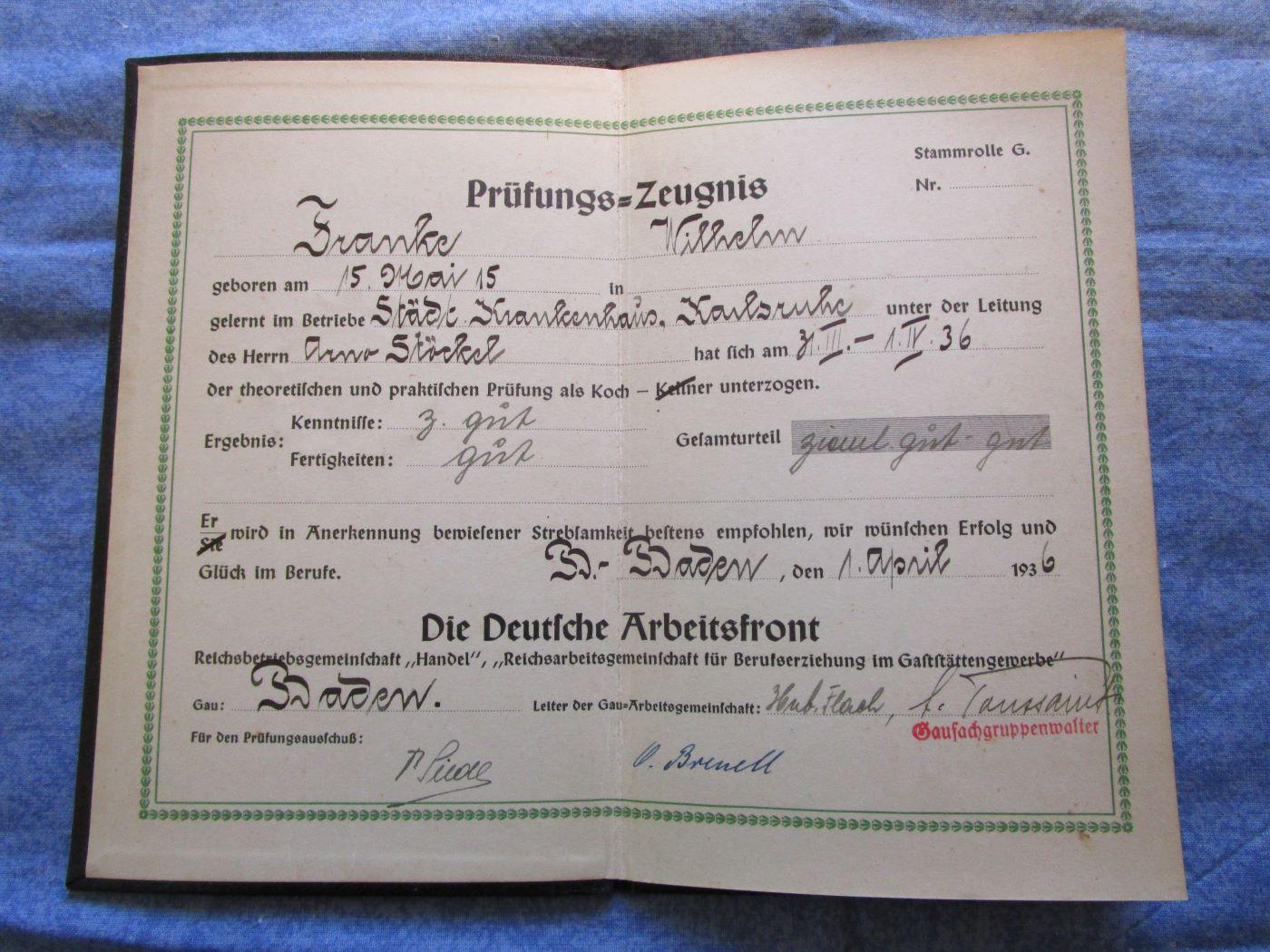 Document allemand de l'arbeitsfront 39/45
