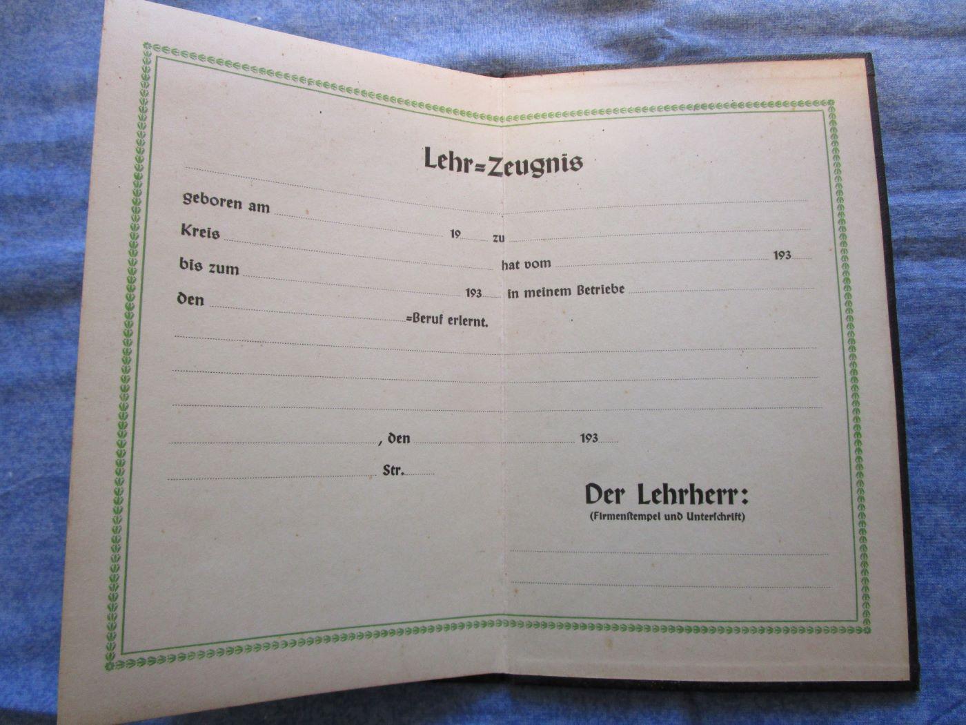 Peu courant document de l'arbeitsfront. Format 19x12 cm. Daté 1936. Prévoir 3.10 euros en lettre verte ou 3.70 euros en lettre verte suivie.