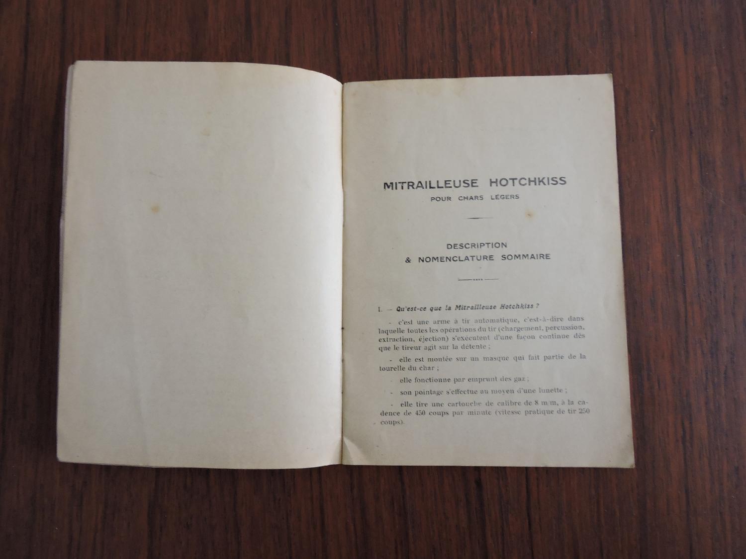 Mitrailleuse Hotchkiss pour Chars légers. Ecole d'application de l'Infanterie et des Chars de combat.