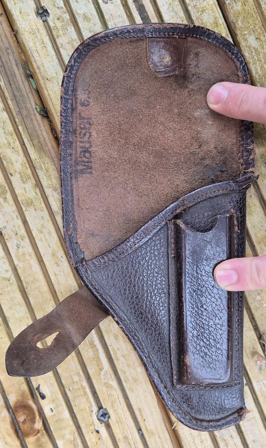 Étui cuir pistolet pour Mauser 1910. En cuir granulé marron.