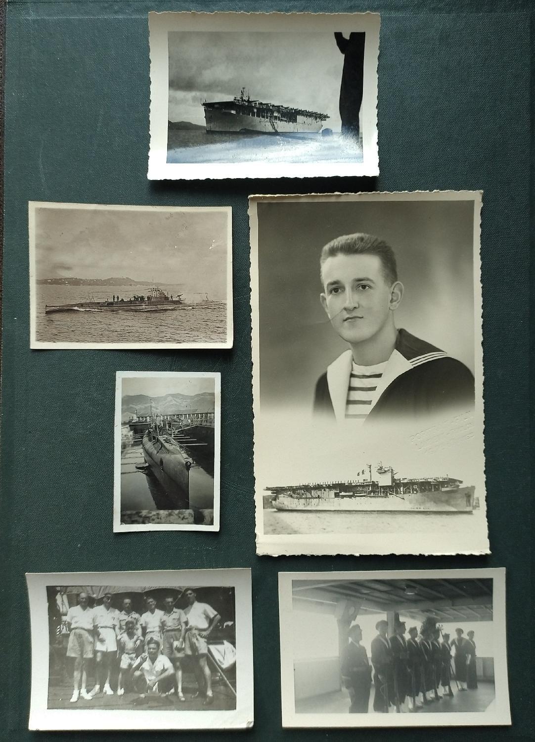 Lot de photos marine, avec sous-marin, porte avions et divers.