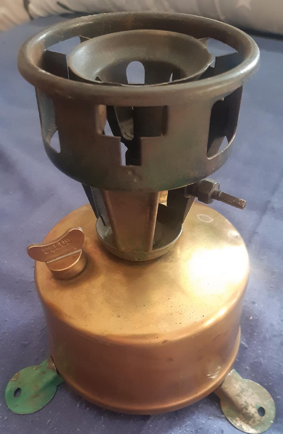 vends ancien réchaud pliant français SELLUS, pour scout, date des années 50-60, manque quelques pièces, à compléter,