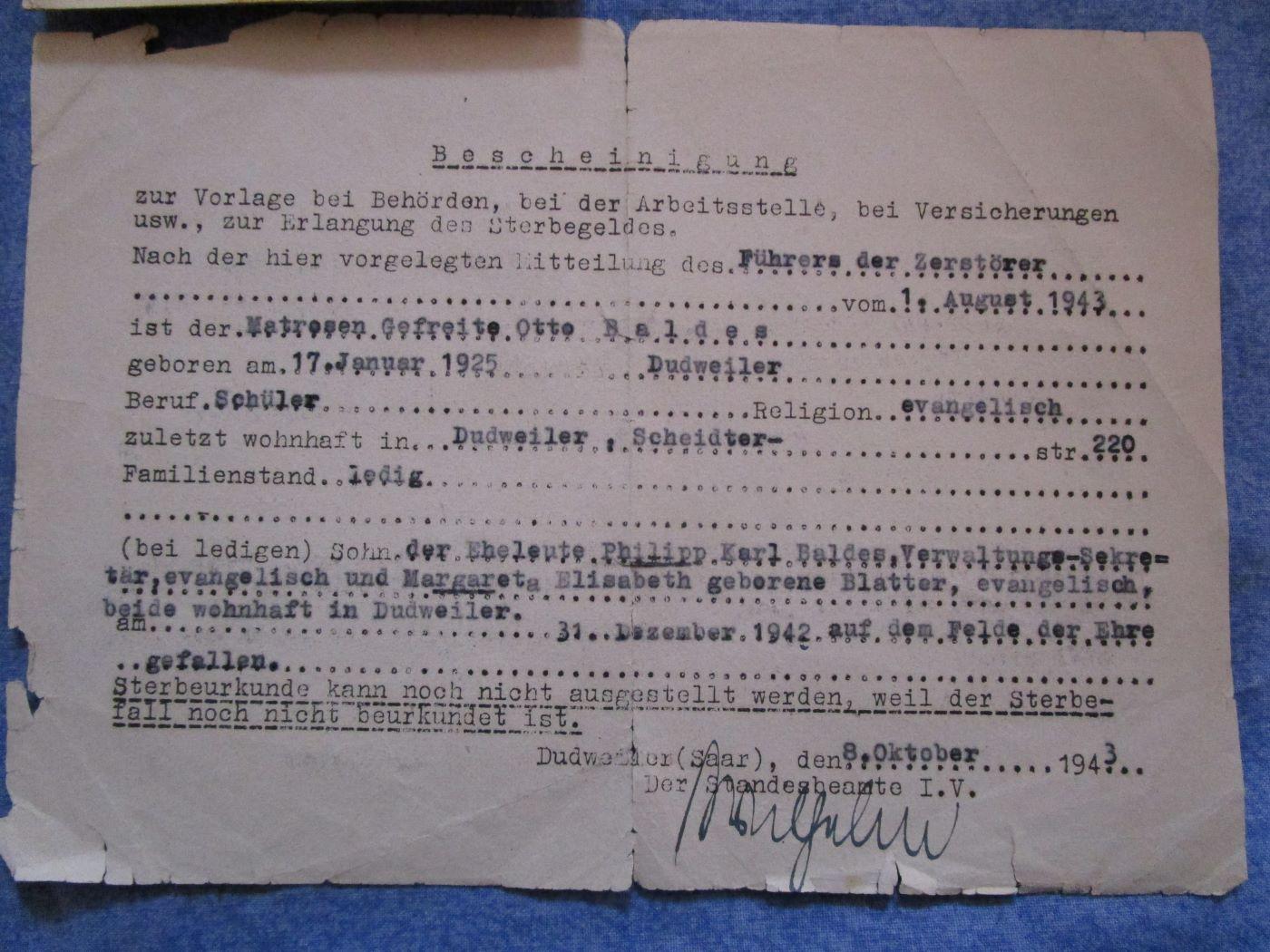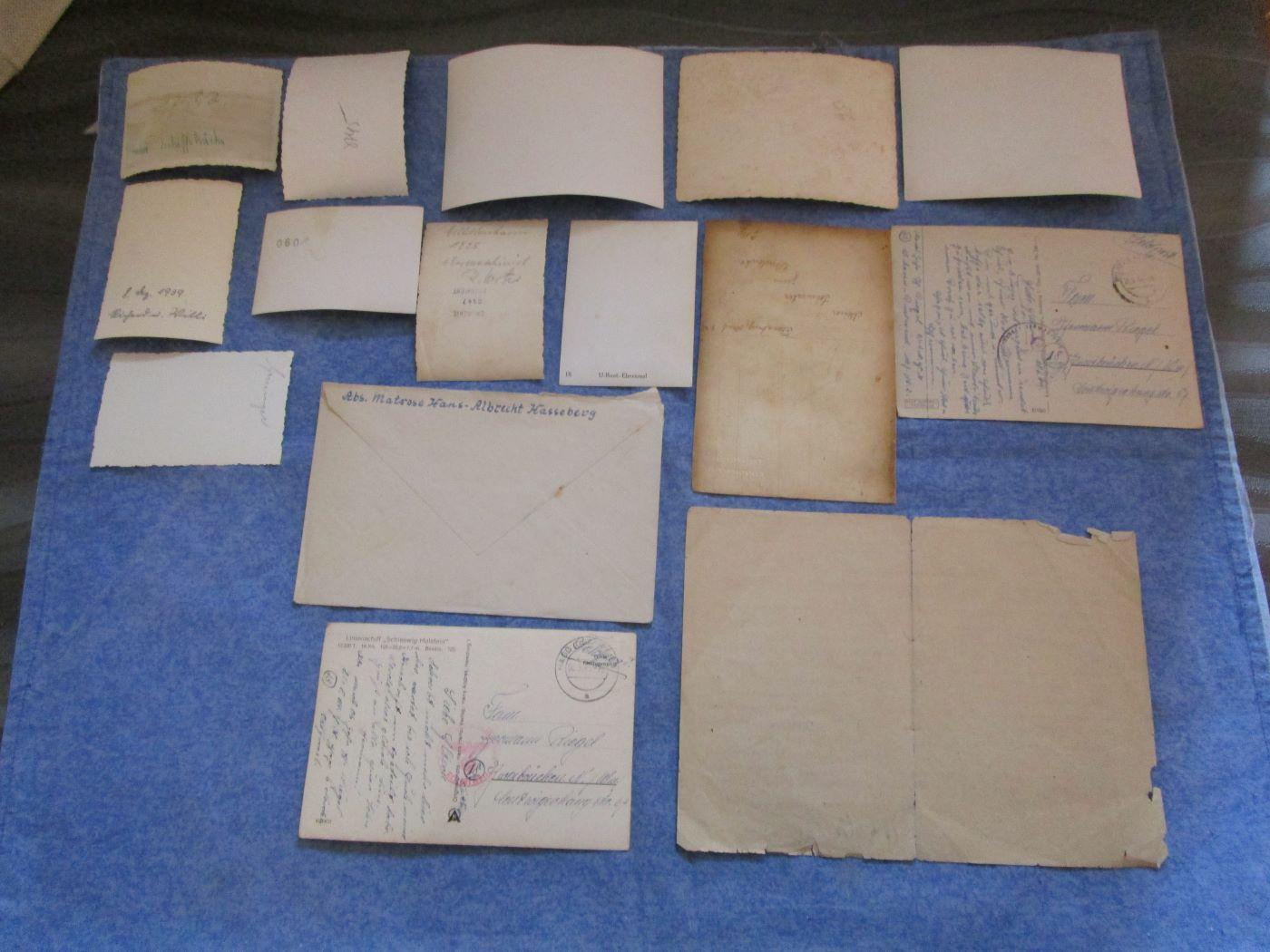 Lot de 15 photos et documents KM 39/45. Avec enveloppe d'un marin et une attestation de décès d'un marin en 1943. Prix pour l'ensemble. Prévoir 3.10 euros en lettre verte ou 3.70 euros en lettre verte suivie. Autres photos sur demande.