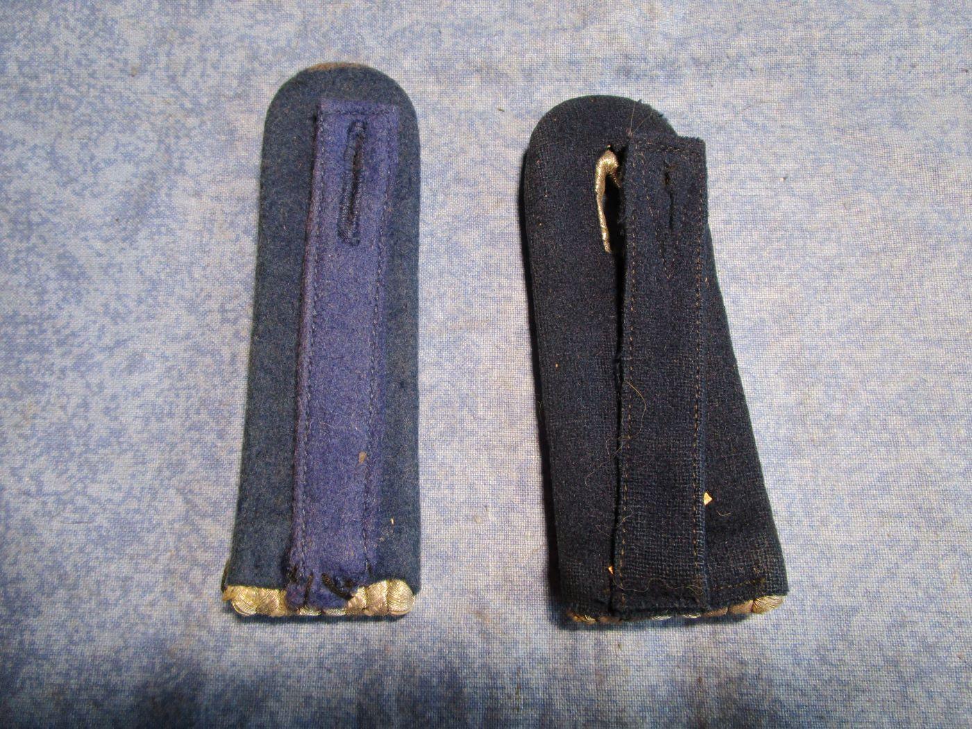 Paire de pattes d'épaules d'officier du service de santé. Elles sont dépareillées. Pattes de fixation pour le port aux épaules. Prévoir 3.10 euros en lettre verte ou 3.70 euros en lettre verte suivie.