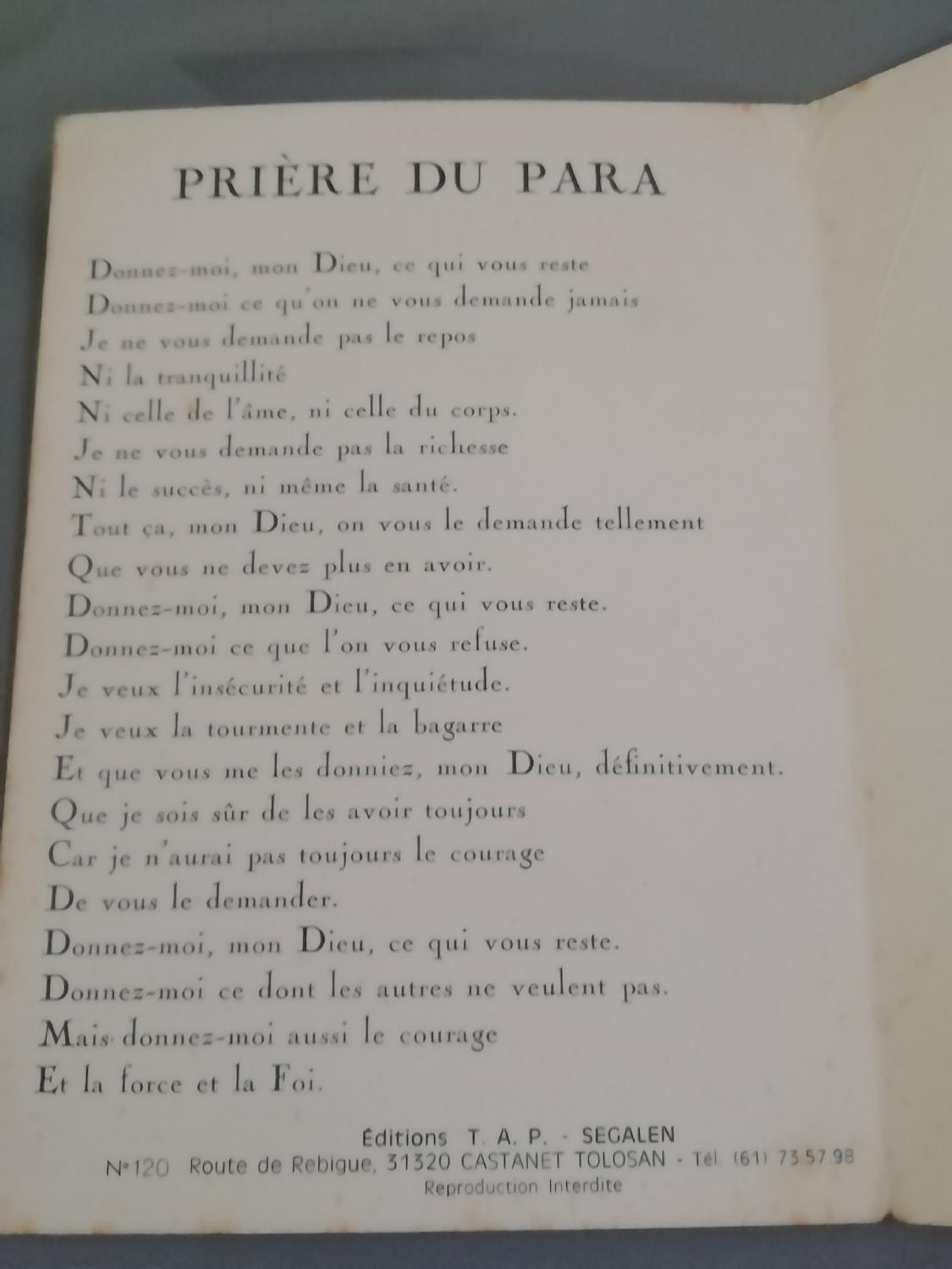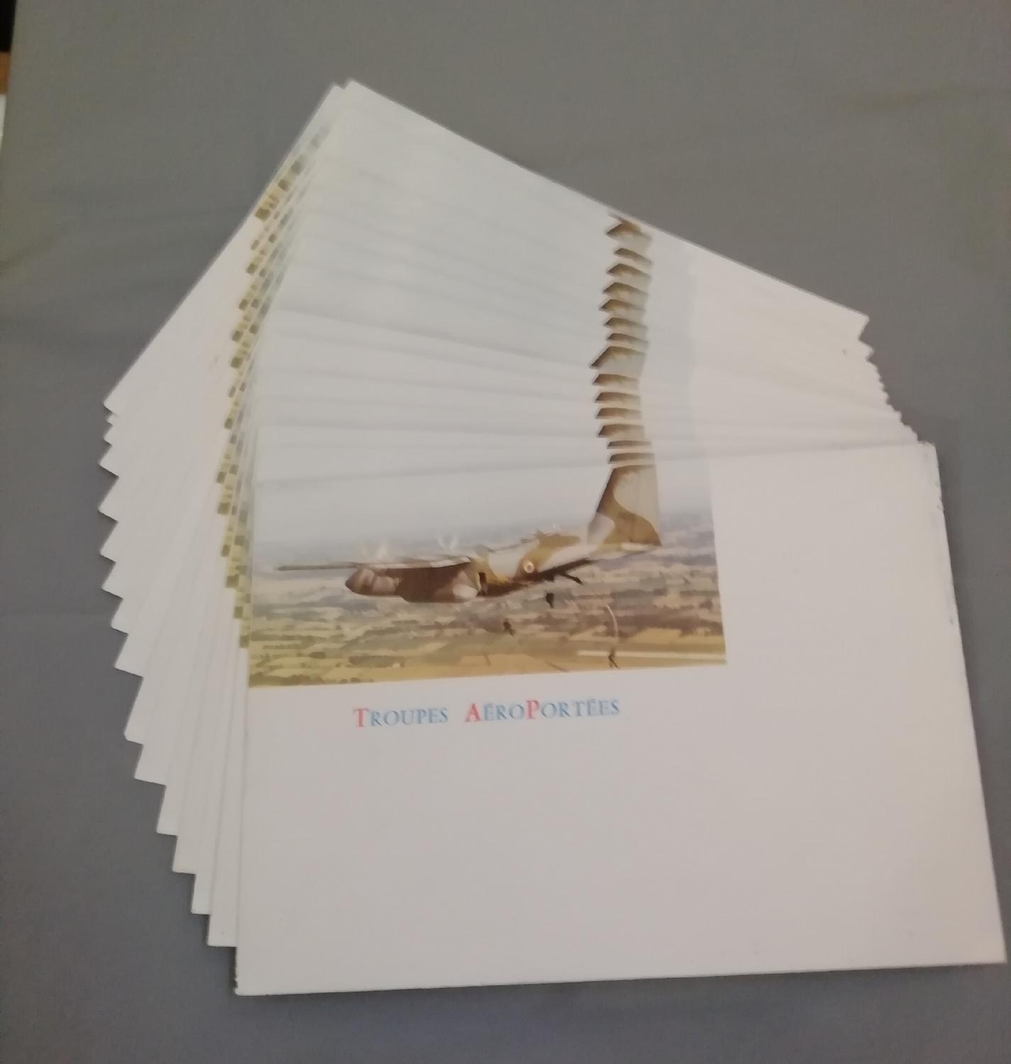 Tente camouflage faite avec 4 ponchos avec ses mats, sardines et cordelettes , lot d'enveloppes (2 formats) et carte avec la prière du para