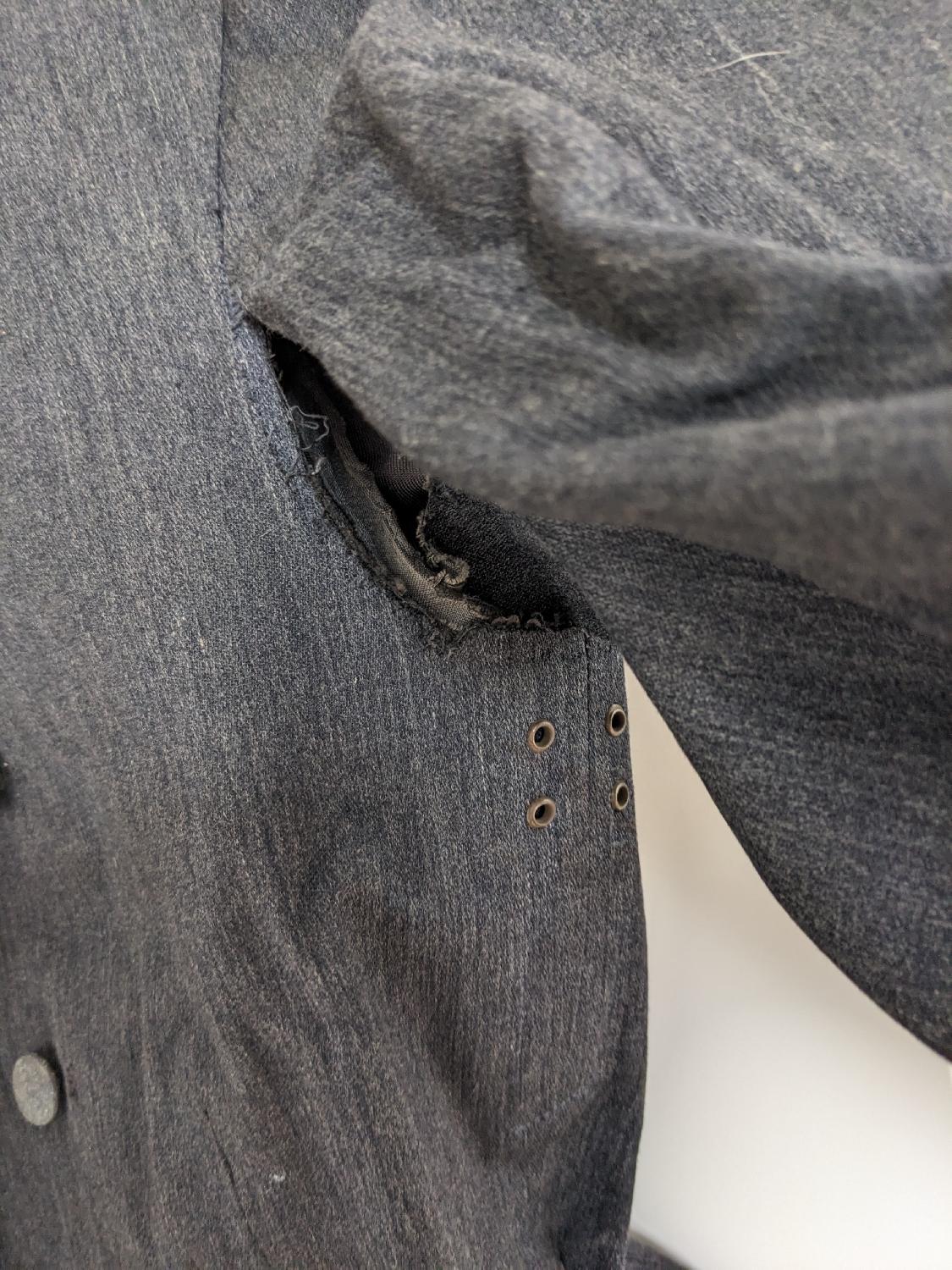 Les boutons sur l'avant ne sont pas ceux d'origines mais il sont bien d'époque. Une manche serait a recoudre au niveau de l'aisselle.