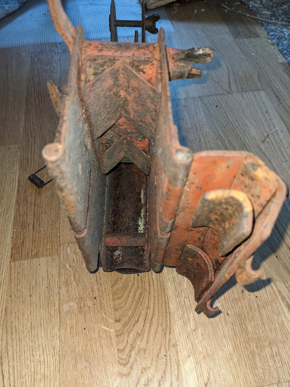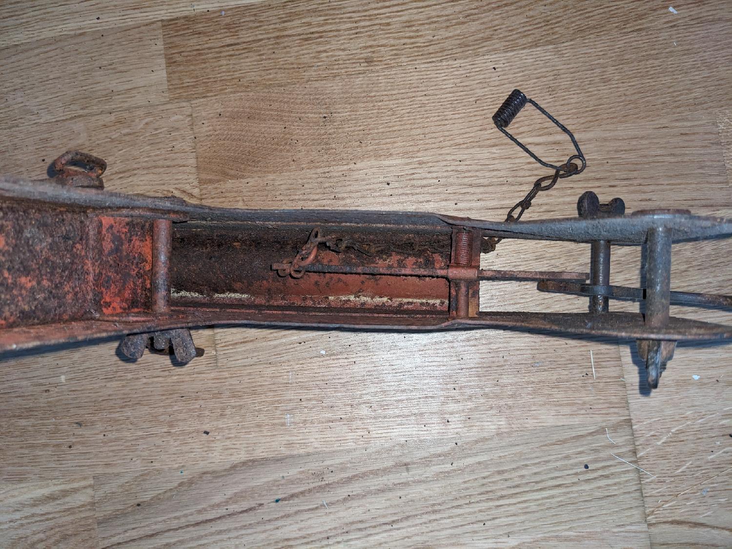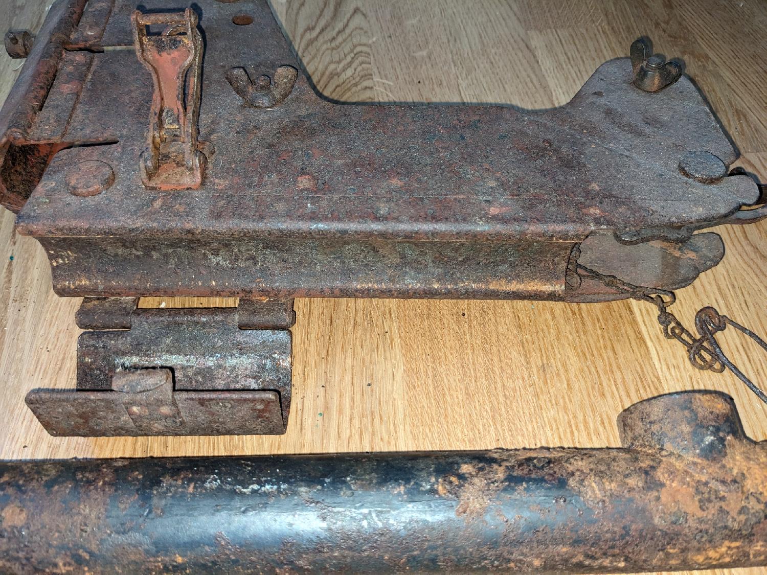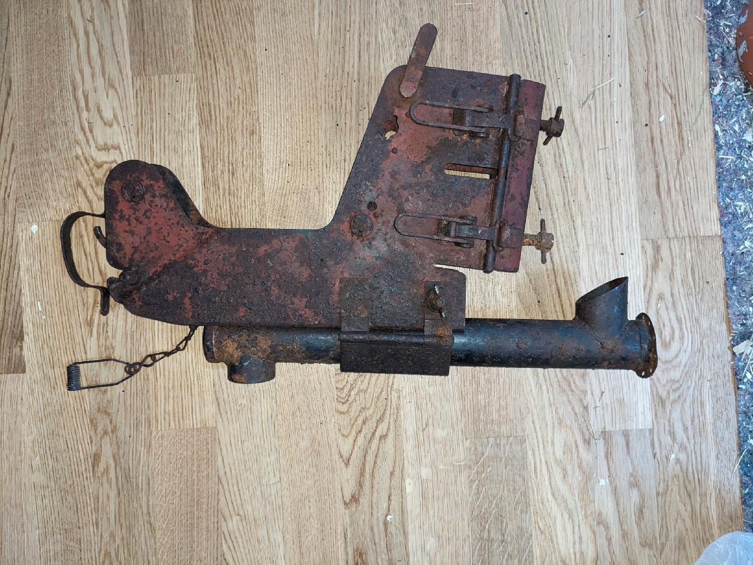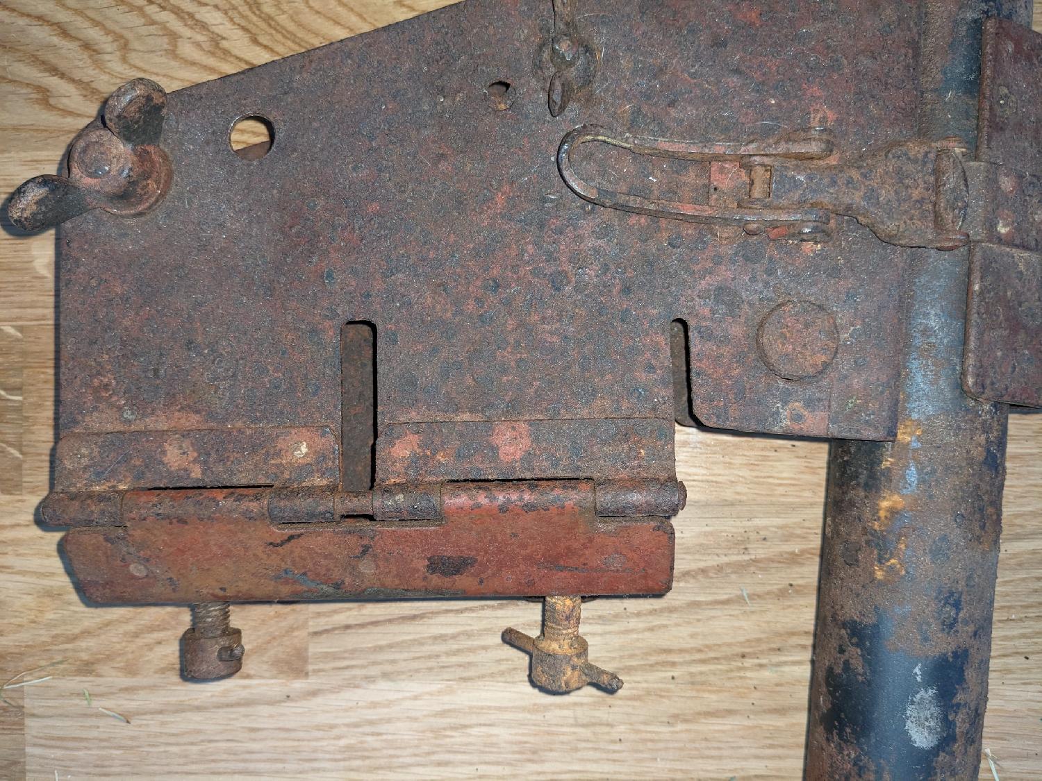 Il s'agit une pièce rouillée mais en bon état. Le métal est solide, il y a de bon reste de la peinture antirouille d'epoque et la quasi-totalité des éléments sont amovibles.