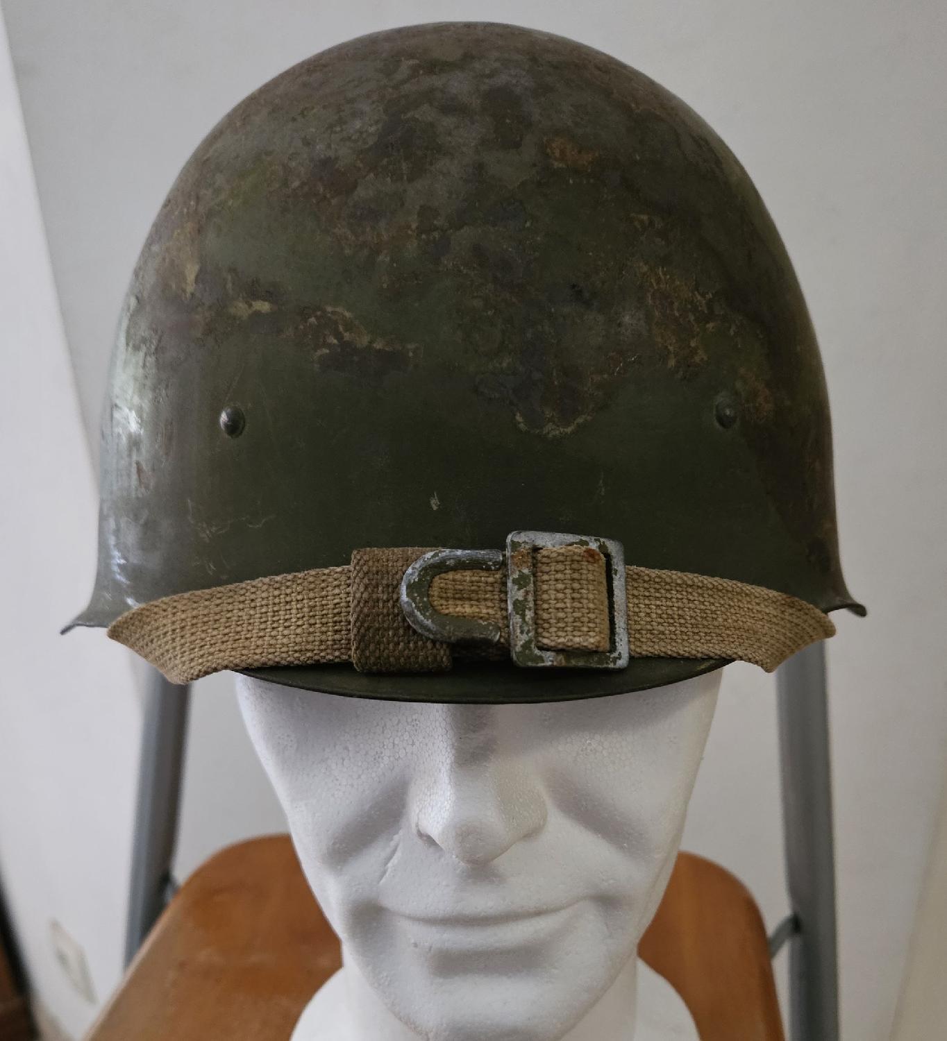 Casque produit par l’usine métallurgique de LYSVA (Oural) de 1941 à 1945 La marque de l'usine est présente ainsi que la taille P1= 57-59 cm et la réception militaire.
