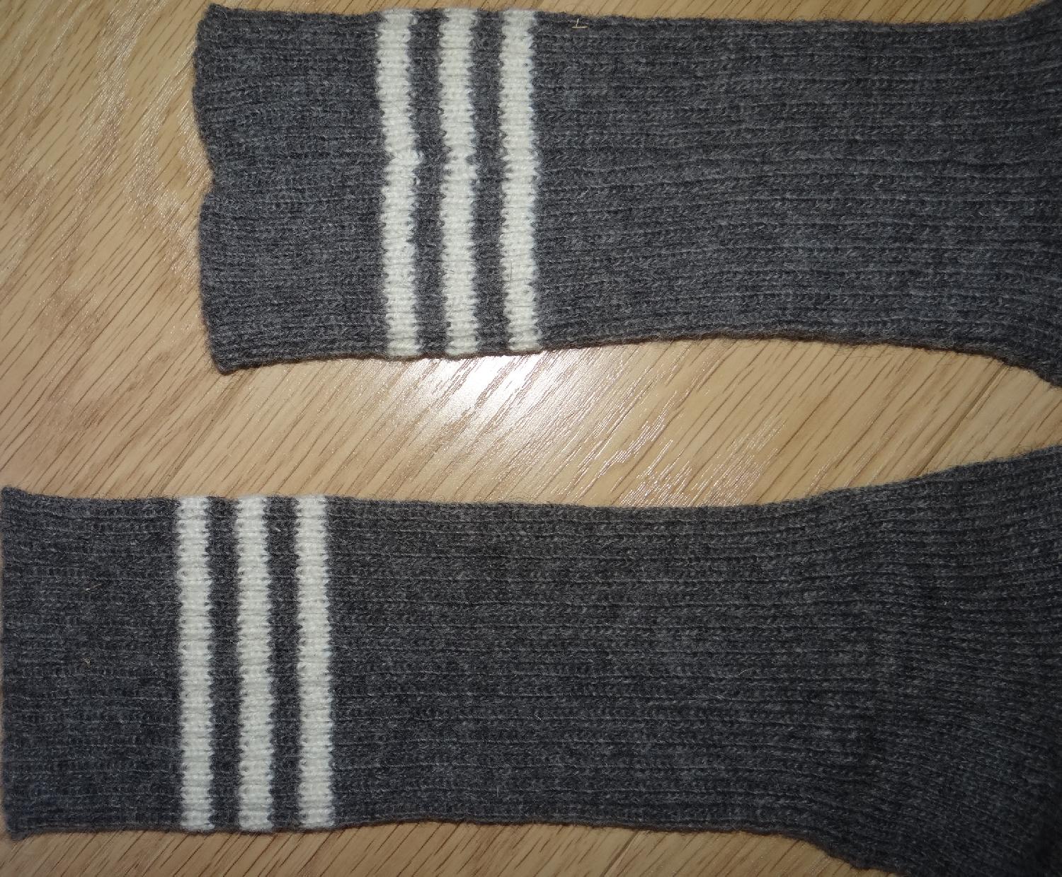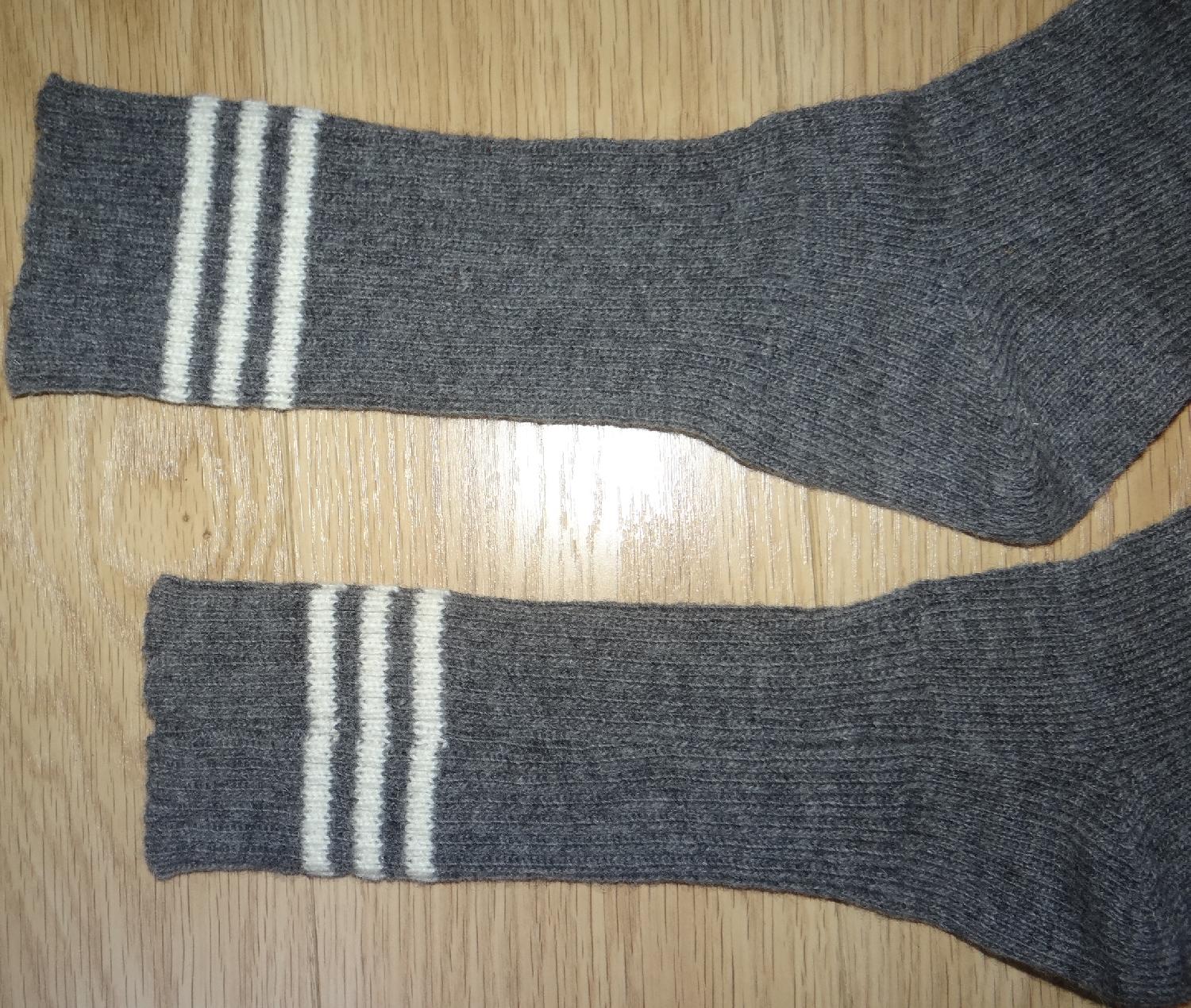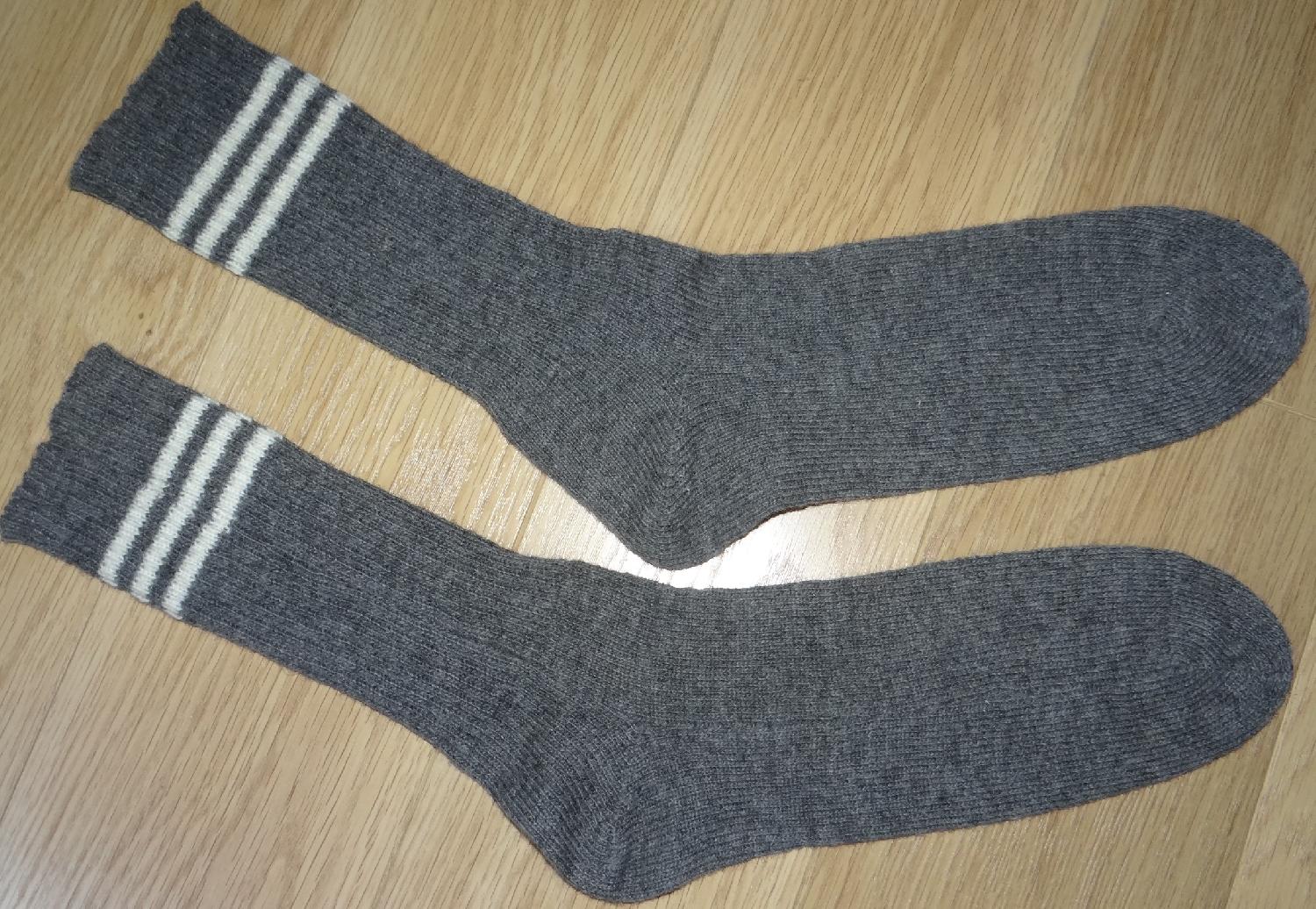 Chaussettes réglementaires en laine grise et blanche avec bandes blanches, superbe état, bonne taille mannequin