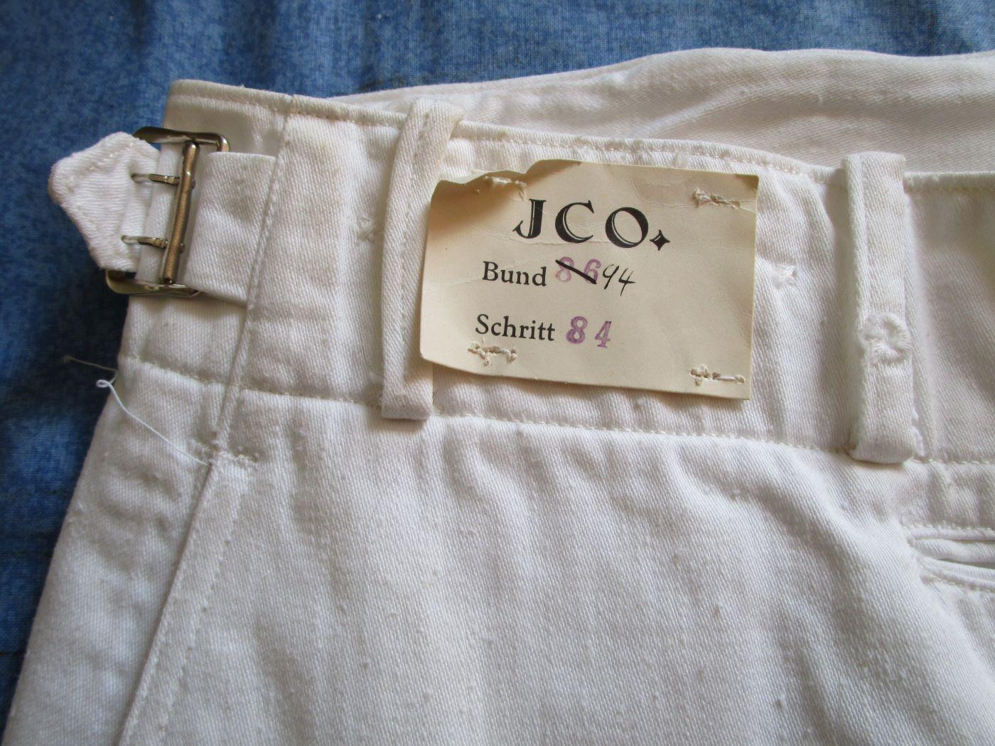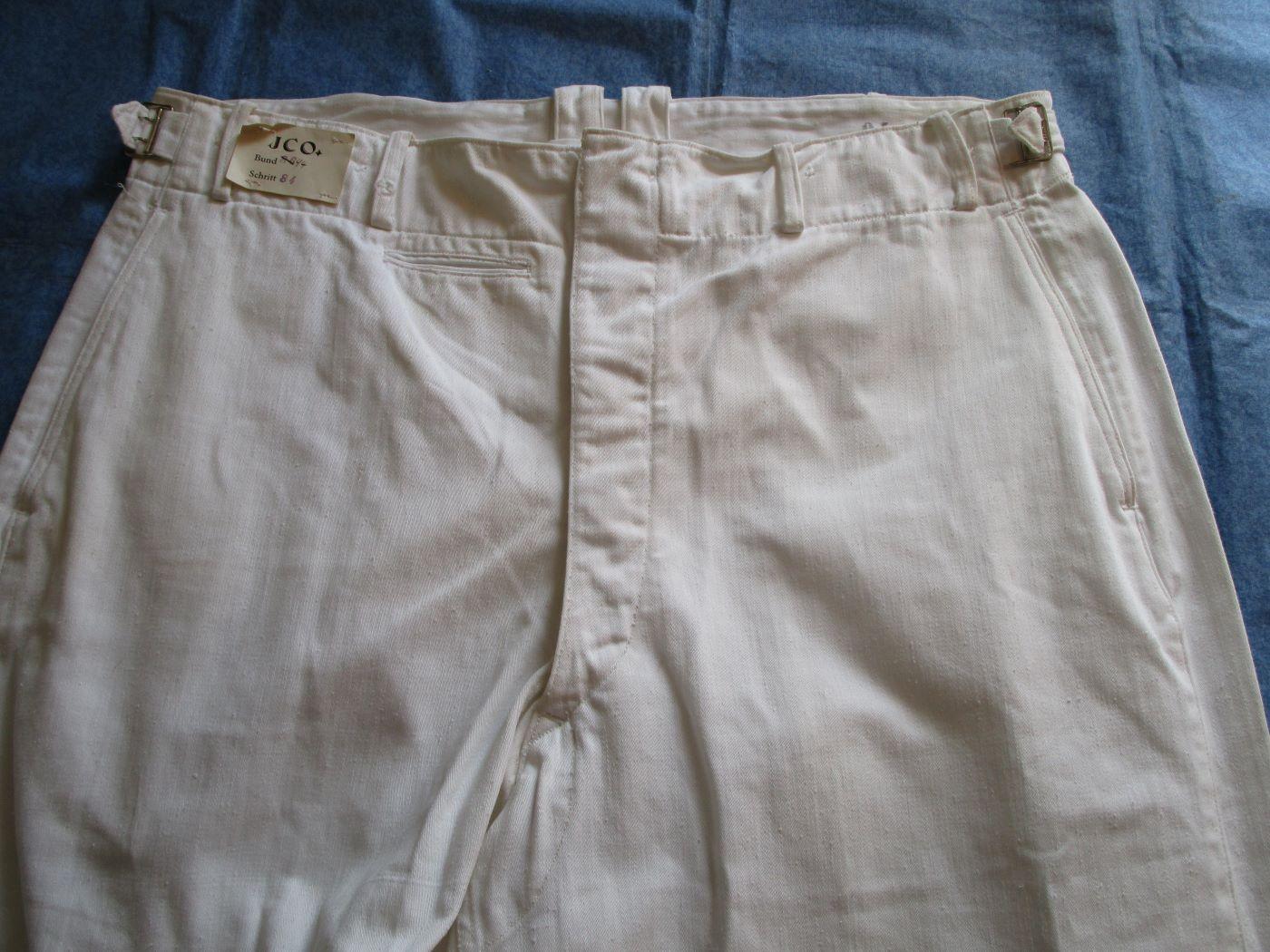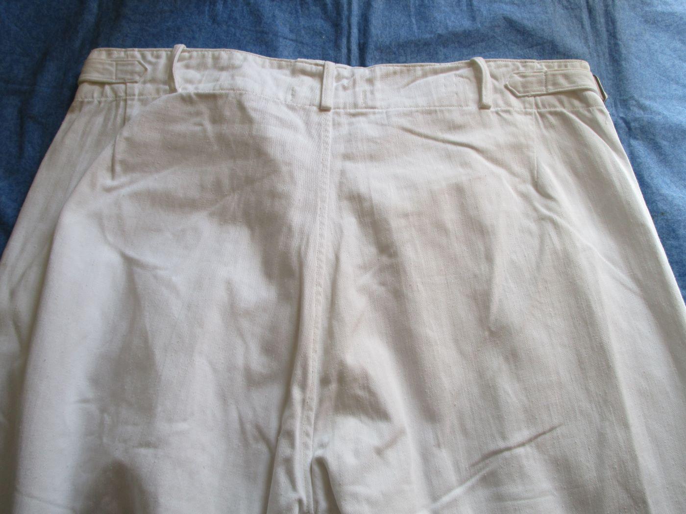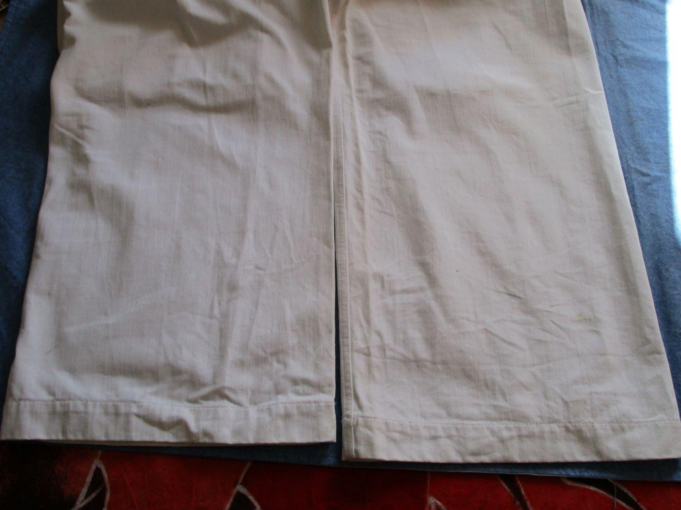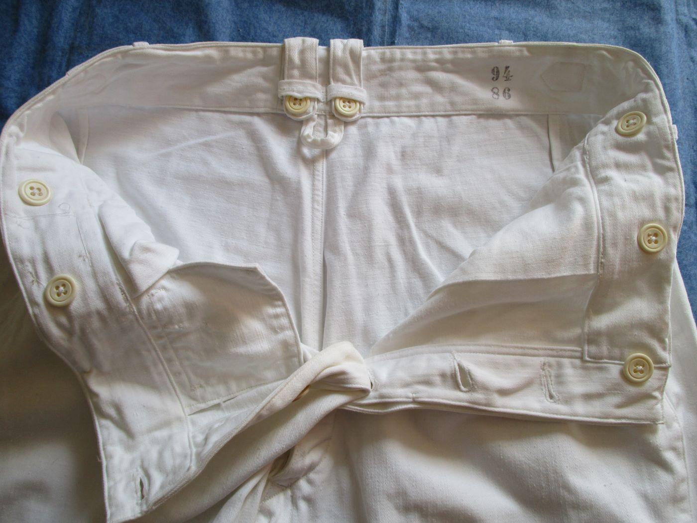 Pantalon de la tenue d'été en coton blanc (pas de corvée) à l'état neuf. Poche à gousset avec œillet sur le passant de ceinture, boutons à bretelle en corne, étiquette de taille présente et marquages sur la ceinture intérieur. Pattes de serrage sur les cotés avec ardillon de la marque "PRIMA". Hauteur total 1.11 mètre. Autres photos sur demande. Prévoir 11.20 euros en colissimo ou 7 euros par mondial relay.