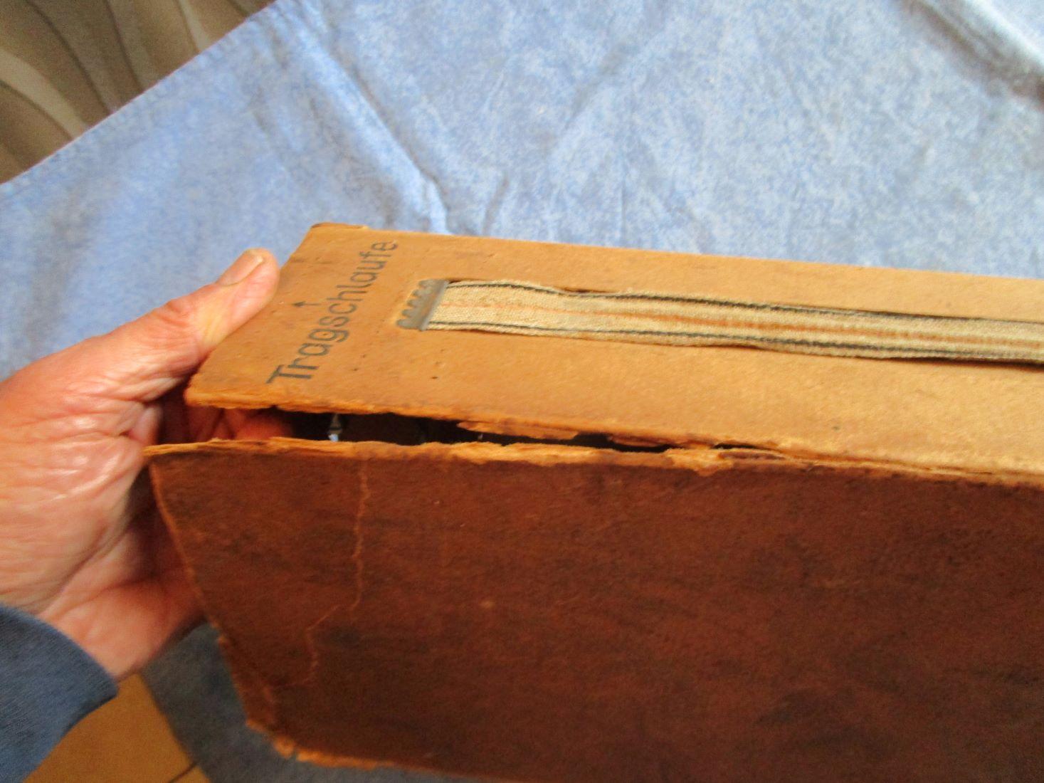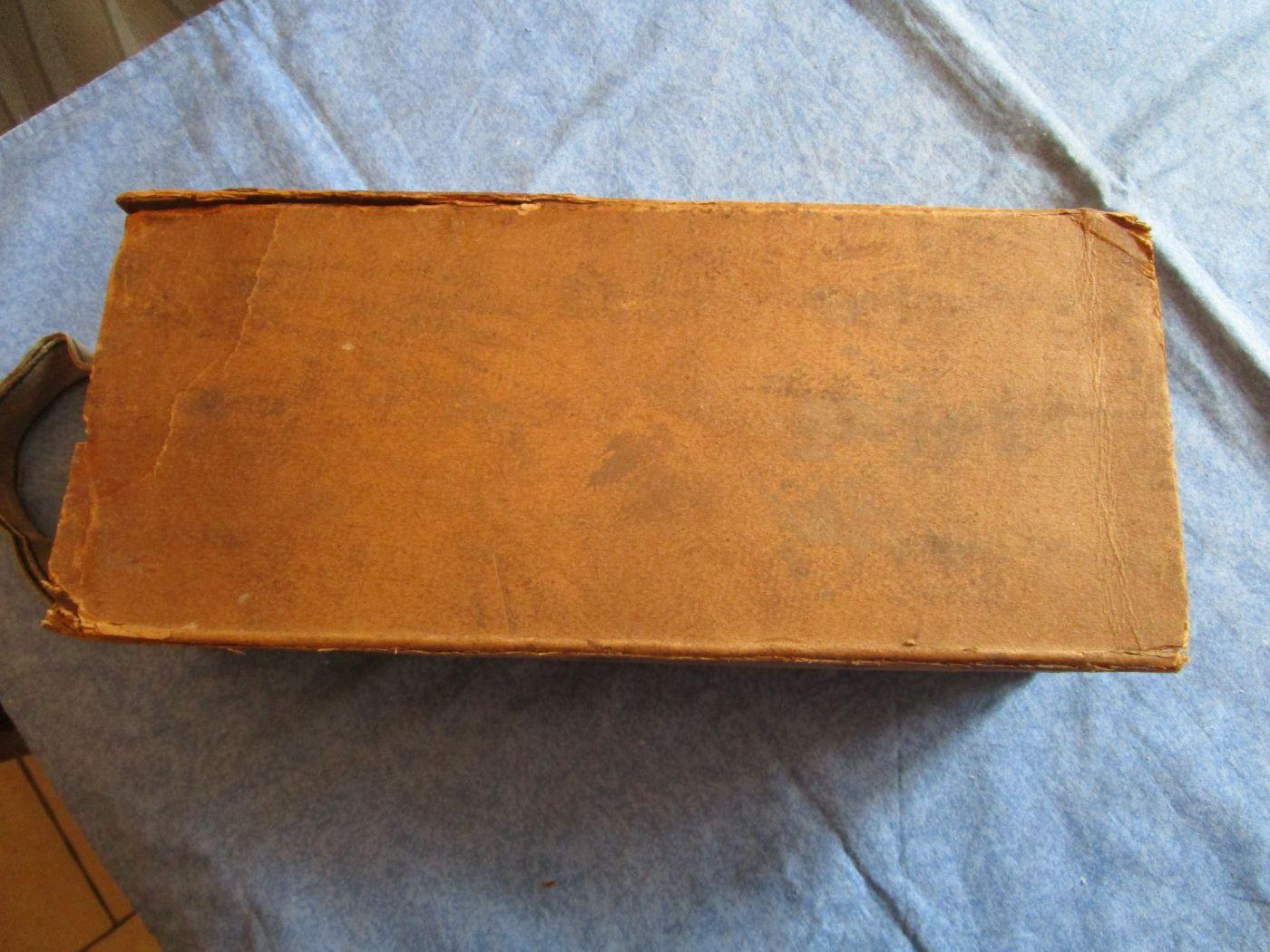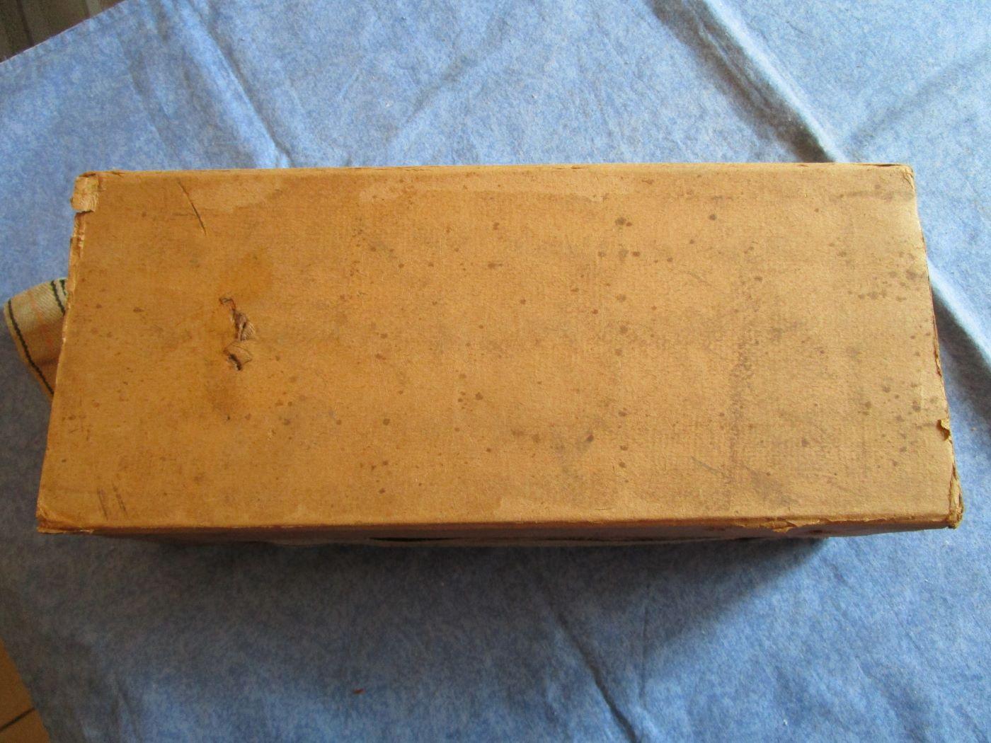 Peu courante boite en carton pour 300 cartouches de 98k. L'étiquette est absente (c'est la même que sur les petits paquet de cartouches), carton fendu sur 15 cm (à restaurer) et il manque un fond. Prévoir 9.60 euros en colissimo ou 5.70 euros par mondial relay.