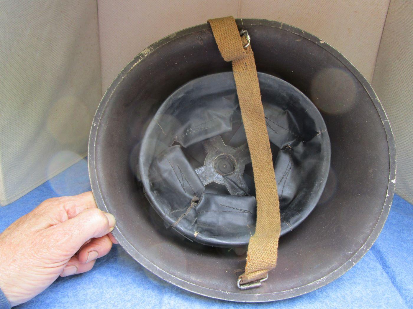 Casque dit "tortue" mark IV. Coiffe bien marquée 7 1/4 FFL 1945. Peinture d'origine. Autres photos sur demande. Trouvé en Alsace. Prévoir 11.20 euros en colissimo ou 7 euros par mondial relay.