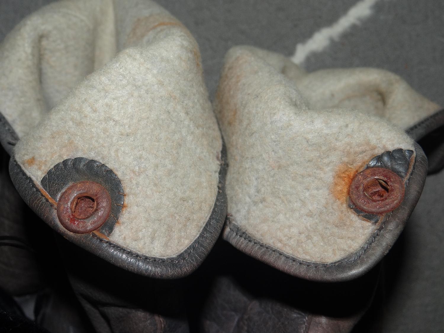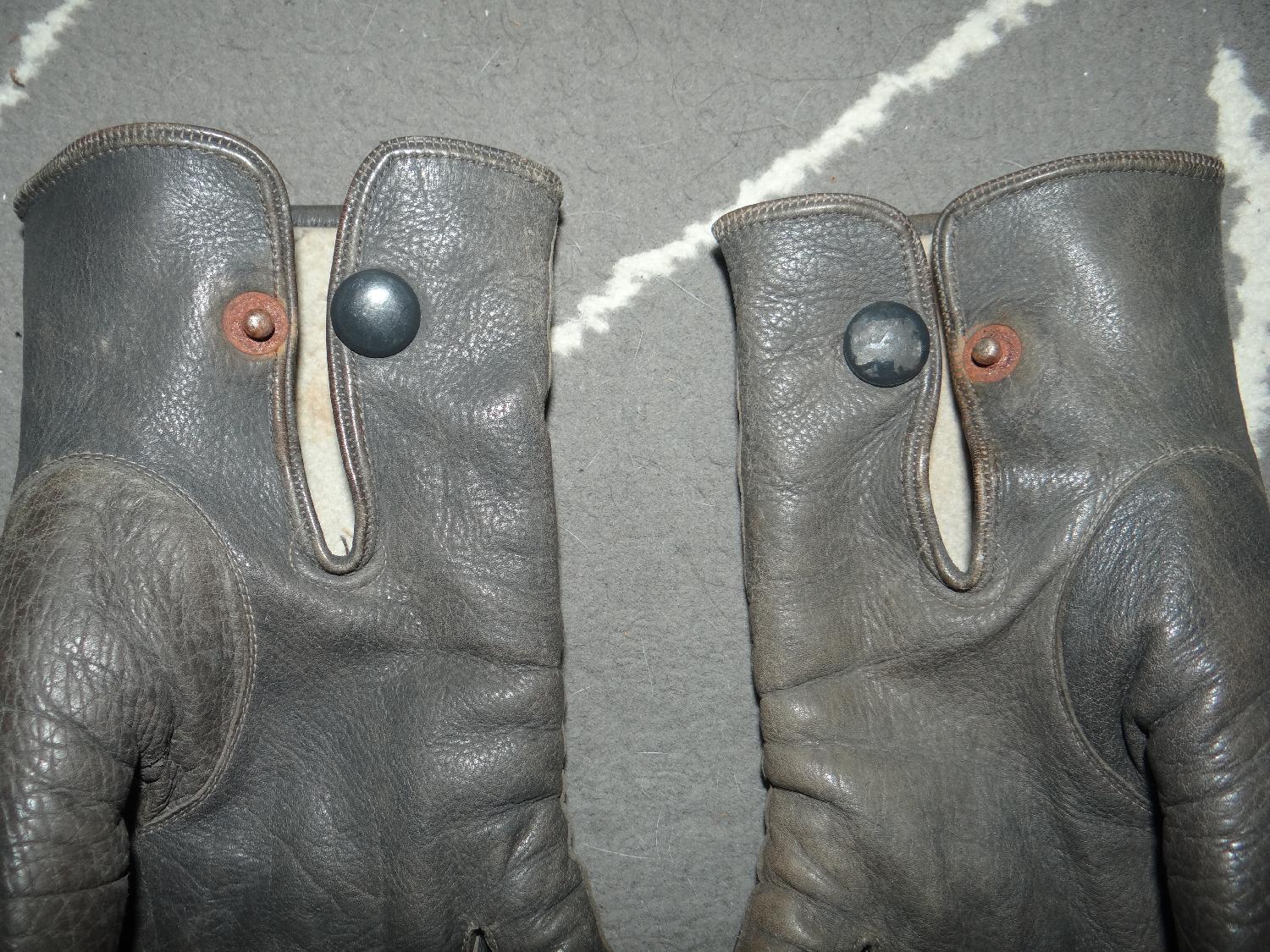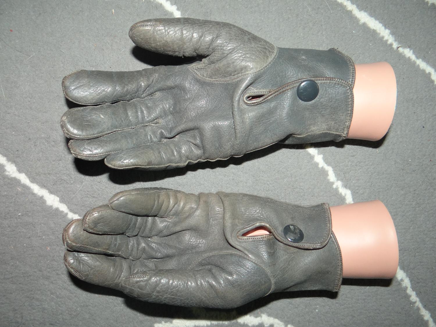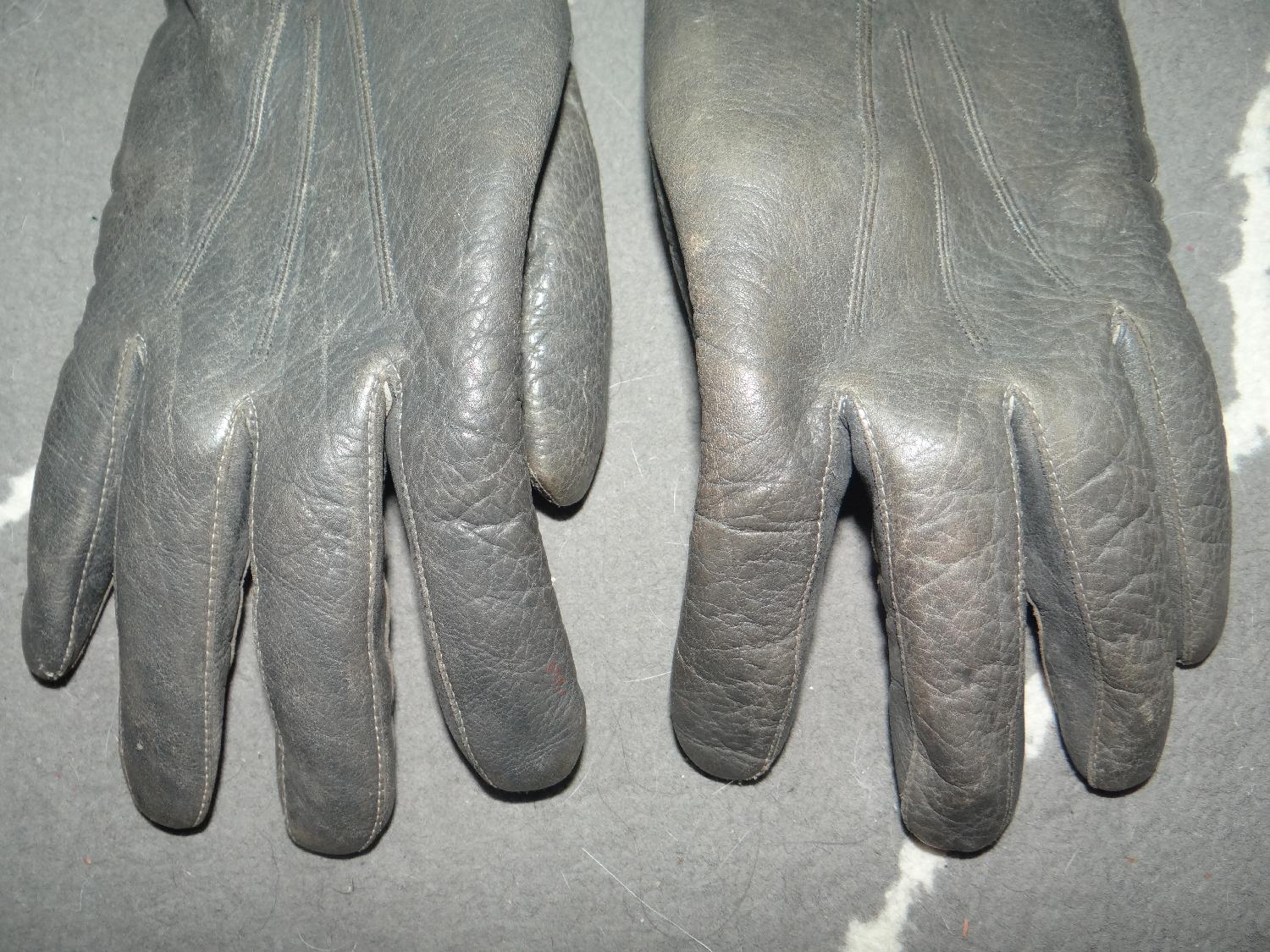 Gants en cuir gris bleu LW, bonne taille mannequin (tiennent sur des mains), pas de défaut, pressions PRYM OK pas fragiles.