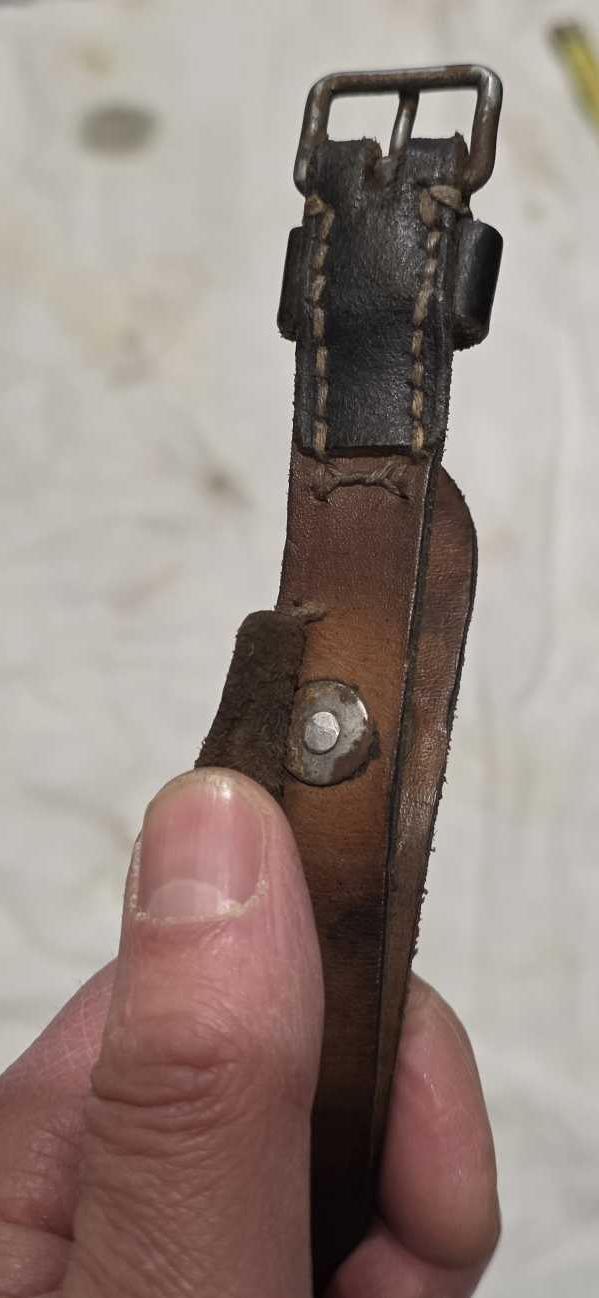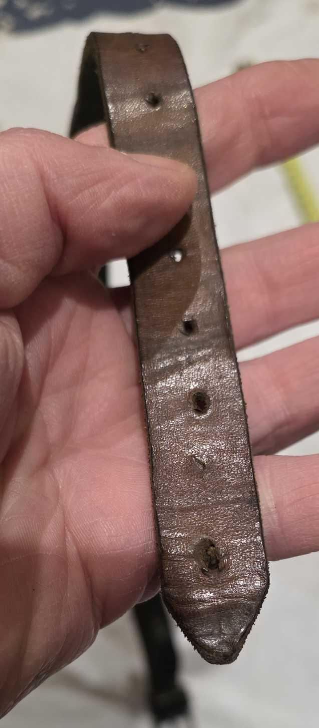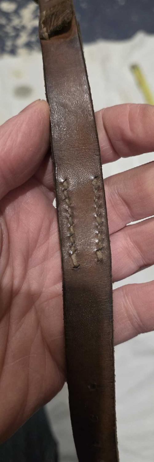 Sangle multi-usage, cuir souple, bon état, pas de marquage visible.