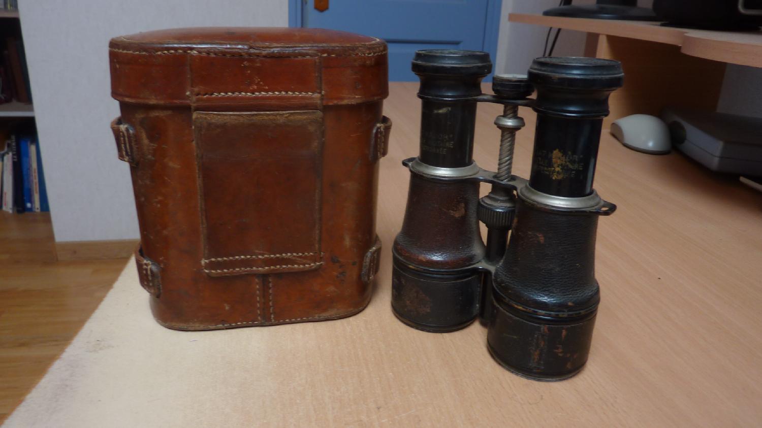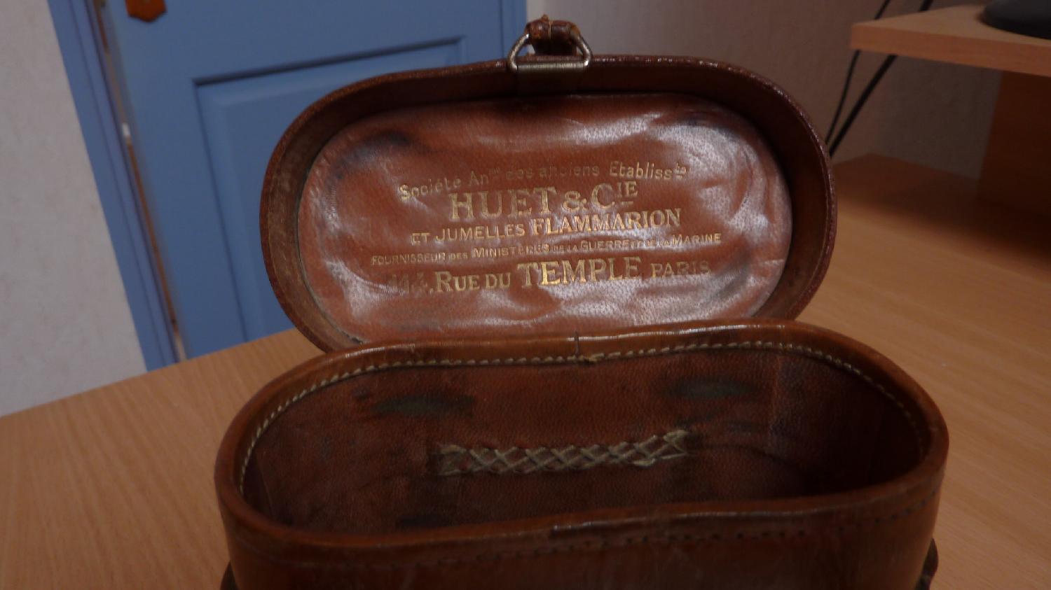 Jumelles Huet avec boussole marquées "état major jumelle militaire perfectionnée". Belle paire, recouverte de cuir avec son étui. 45 euros plus port 5,35 euros en mondial relay. Paiement par chèque ou par paypal. Possibilité de venir chercher sur place.