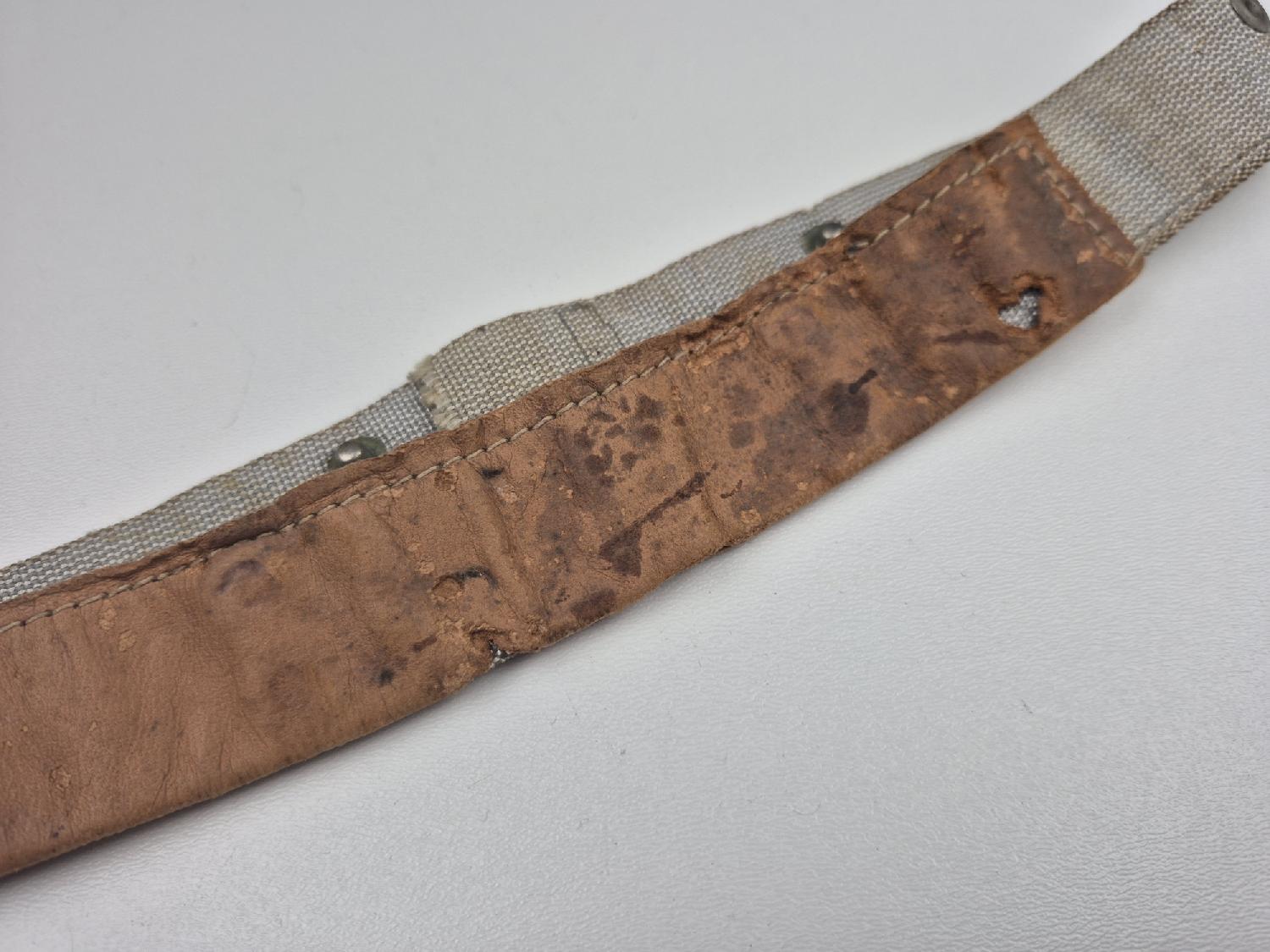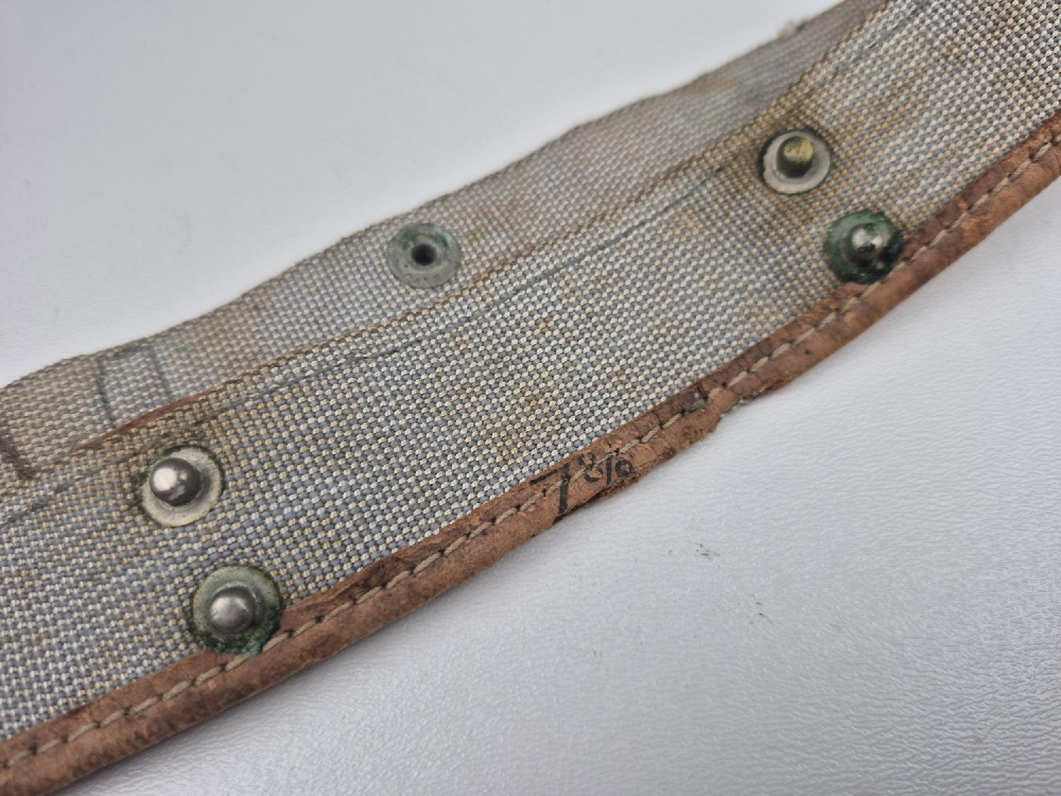 Rare bandeau de casque appelé Sweatband, fabrication en rayonne grise et cuir, destiné au casque M1 premier type.