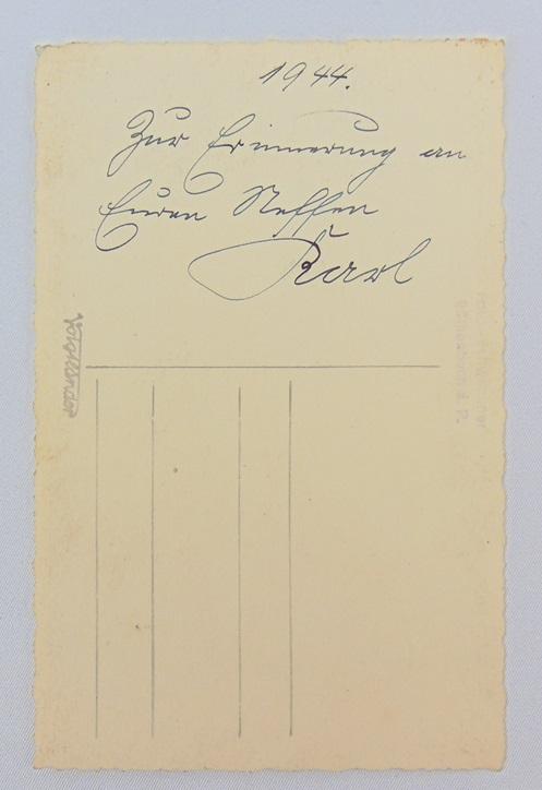 Portrait carte postale d'un soldat de la Kriegsmarine avec son bachi. Écrite au dos et daté 1944.
