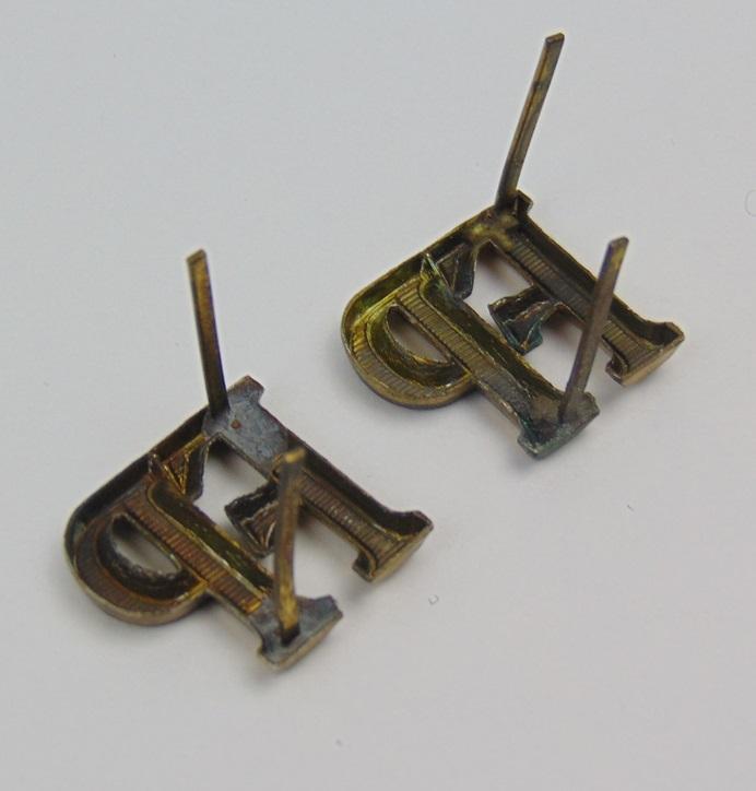 Monogramme "FP" FeldPost en métal embouti de couleur doré pour officiers " couleur légèrement ternie."