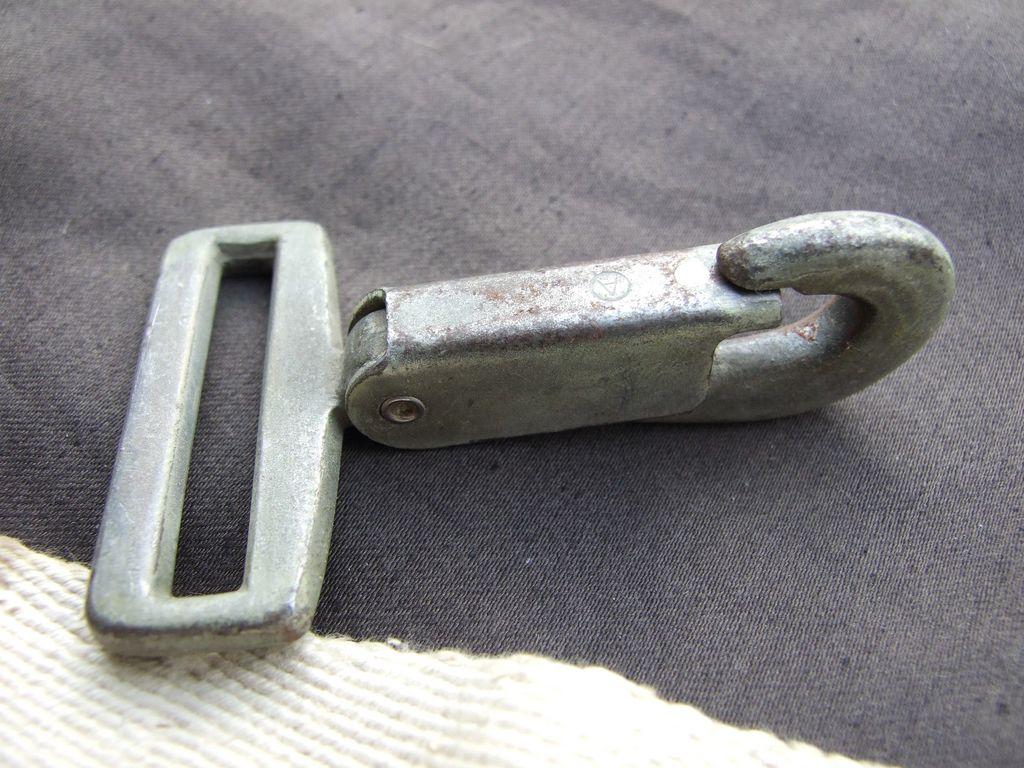 Lot de un snap hook pour parachute T5 et d'un morceaux de webbing original de 15 cm, idéal pour vitrine