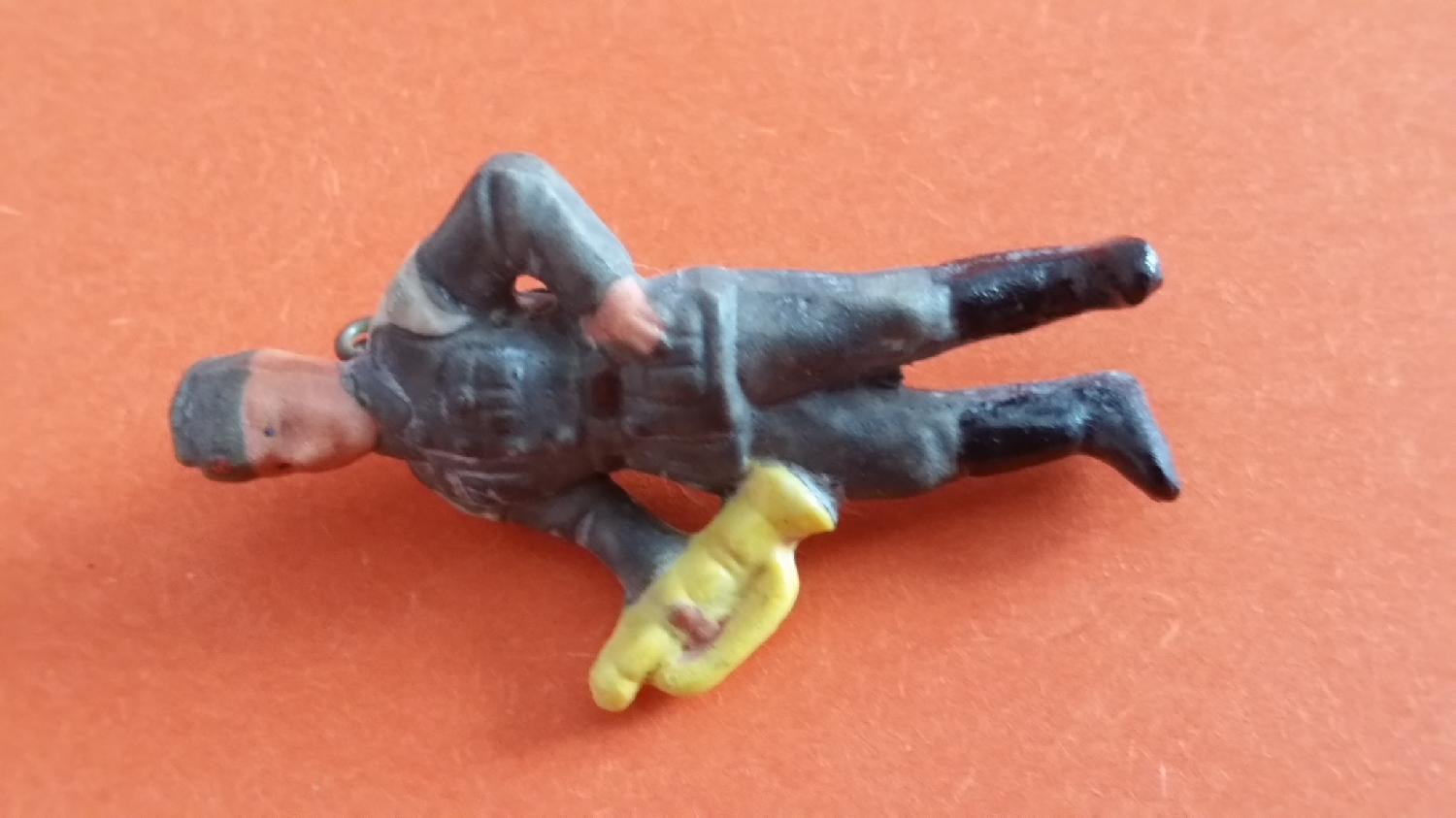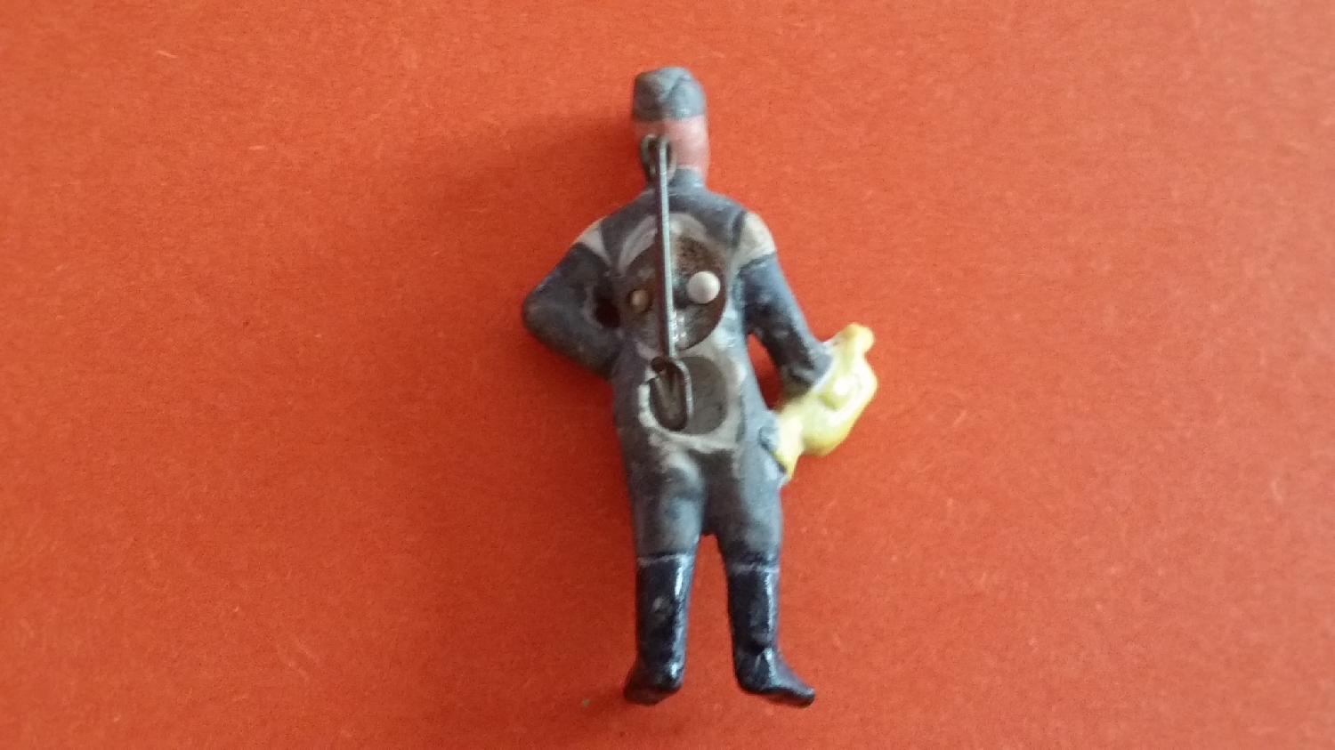 Miniature en porcelaine peinte à la main d’un soldat musicien de la WH. Il porte la tenue de service avec le calot et les « nids d’hirondelles » sur les épaules. Hauteur de 4,5 cm. Réalisé dans le cadre de l’aide aux soldats (winterhilfswerk – « œuvre d’aide d’hiver »). Avec agrafe au verso. Excellent état. Peu courant. Authentique, respect de la charte du collectionneur.