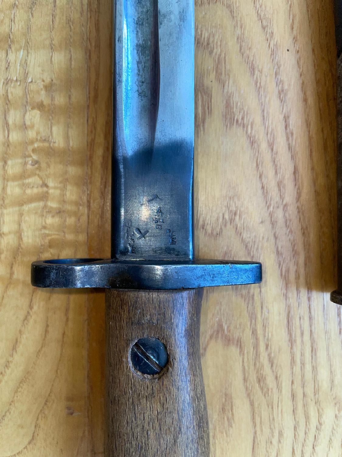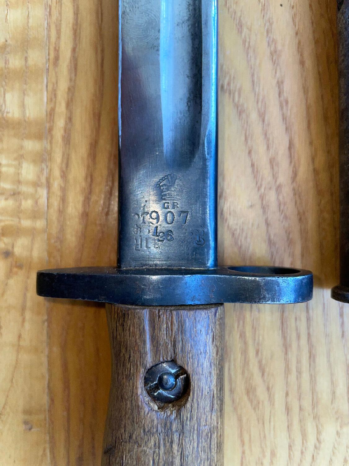 Belle baïonnette modèle 1907 - Marquage DP ( Drill Purpose ) et pointe arrondie faite pour l'entrainement .