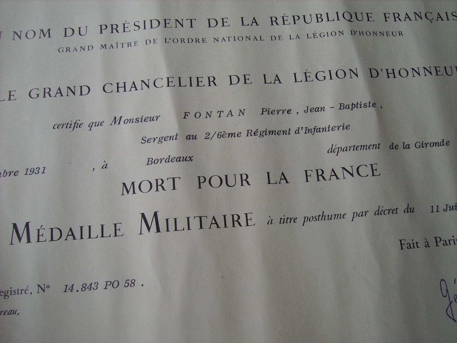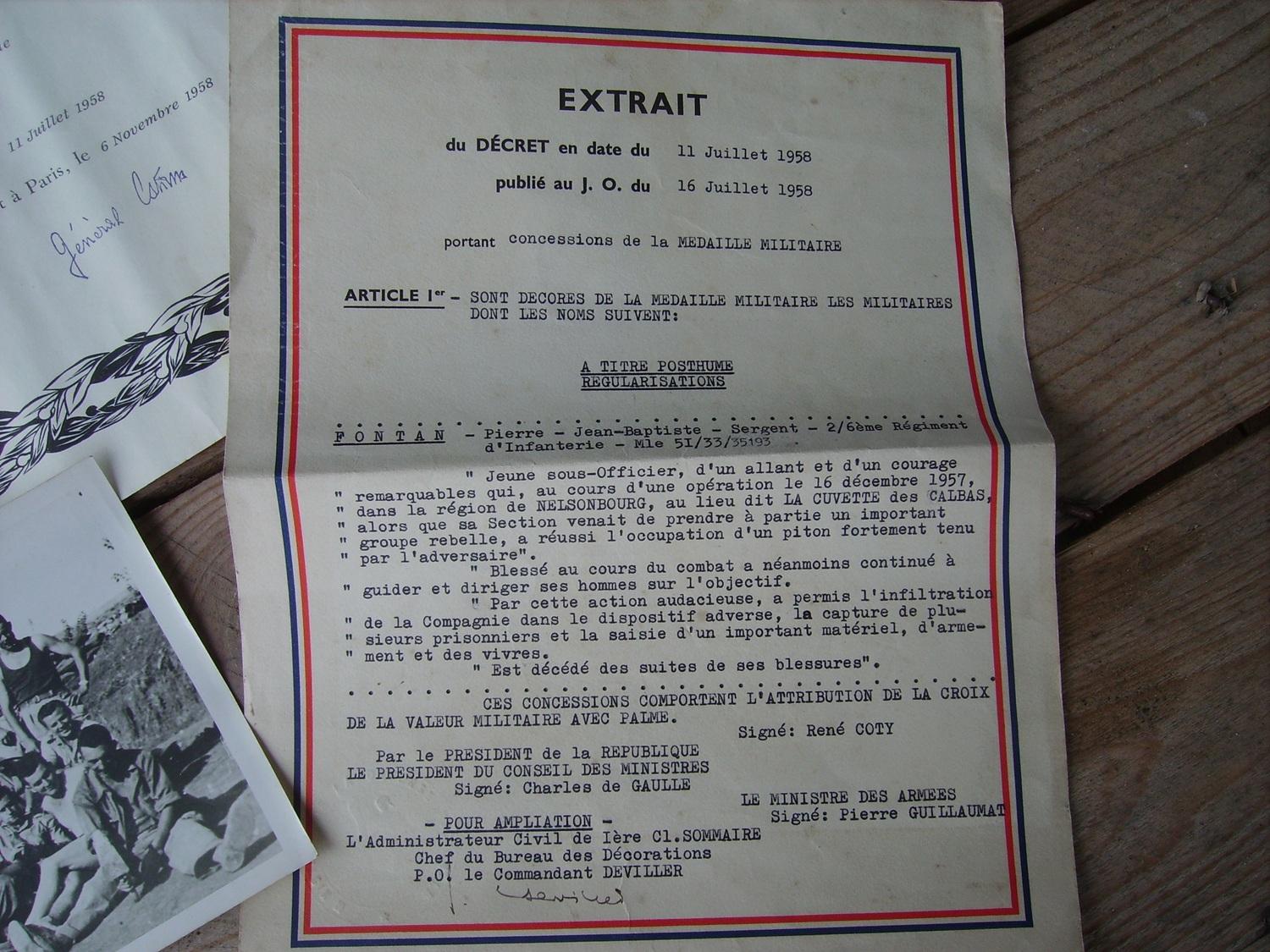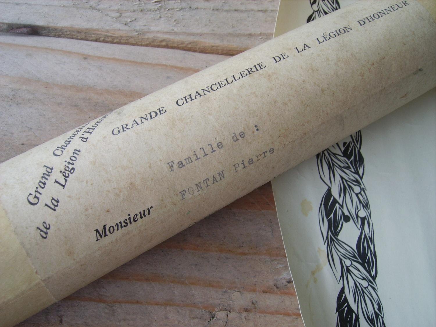 Diplôme d'attribution de la médaille militaire dans son emballage carton d'origine daté 1958.