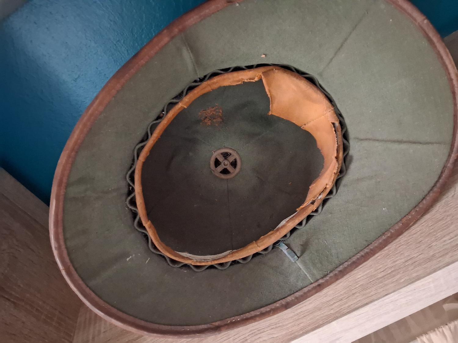 Rare casque tropical kriegsmarine reconnaissable à son intérieur vert. Dans l'état...