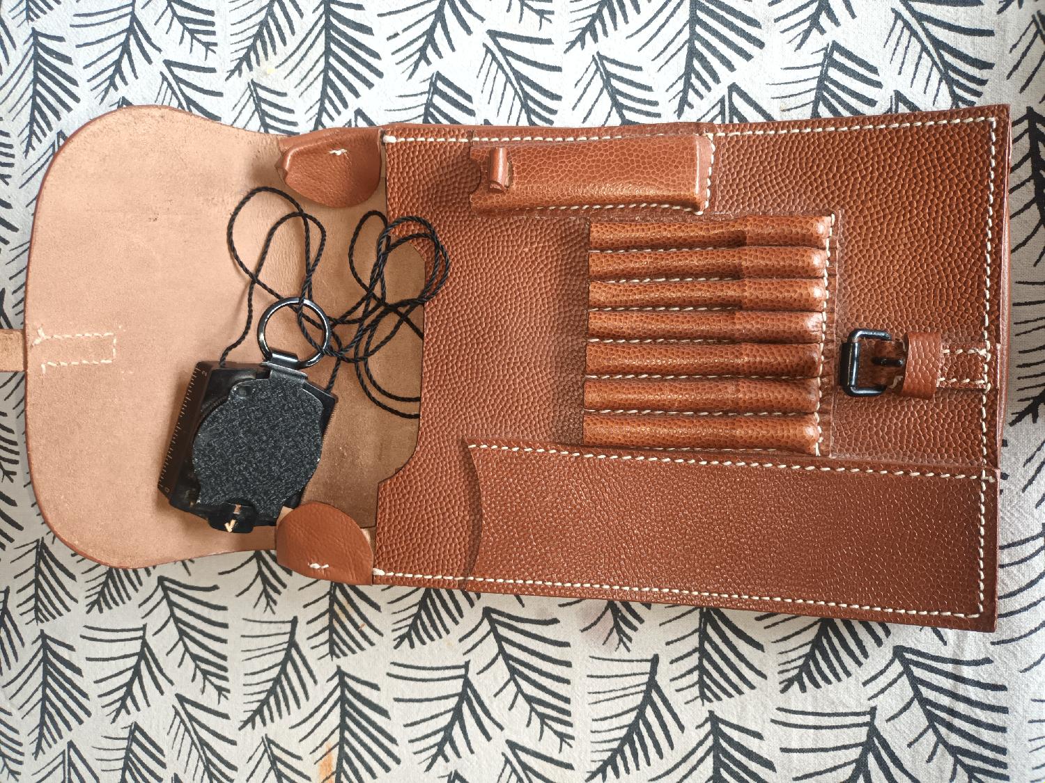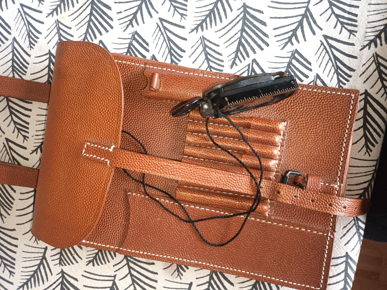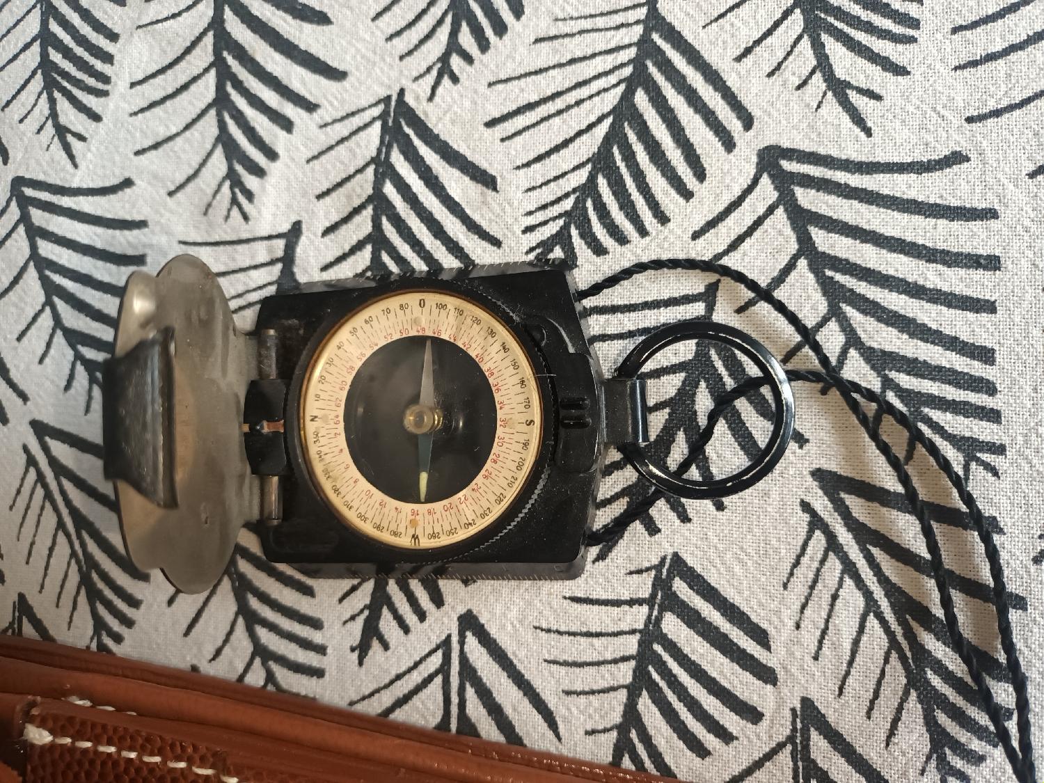 Très bel ensemble composé d'un porte cartes brun daté 1940 avec une bossole réglementaire d'origine.