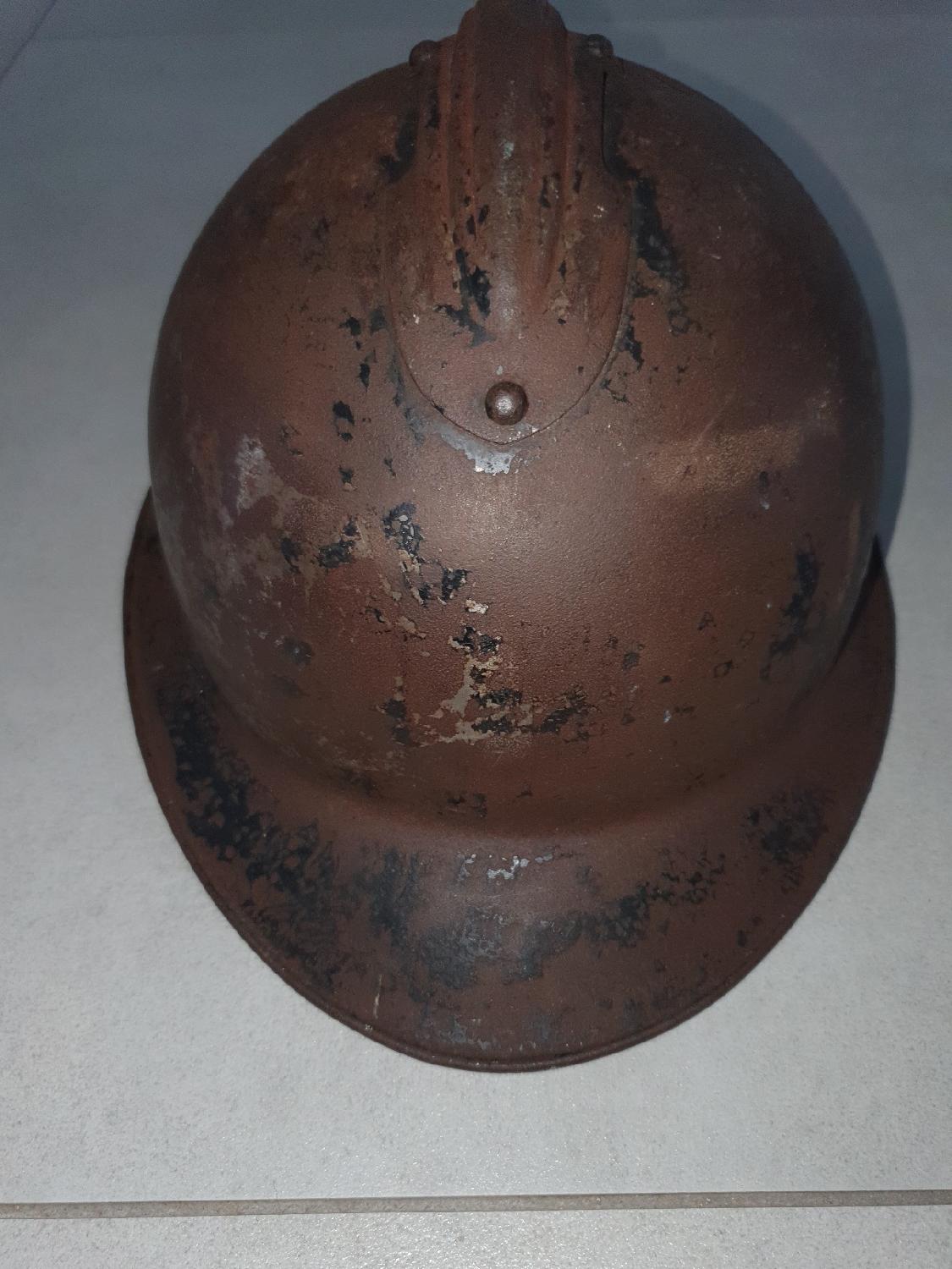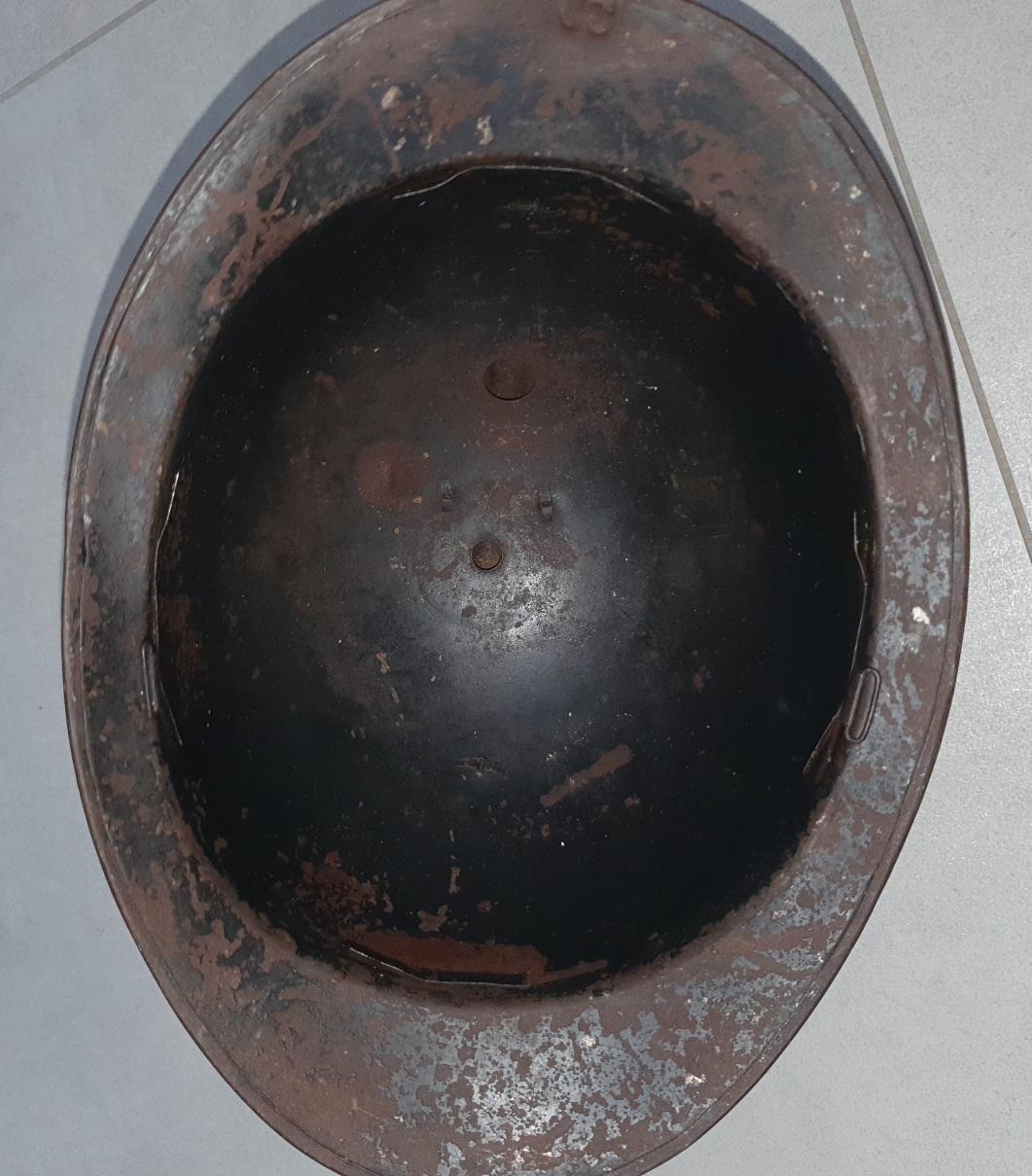 A nettoyer, je présume italien car en une pièce sans trous pour l'insigne et attache en pattes pliantes. T58 environ. Coque très saine sans trous ou autres. Port offert.