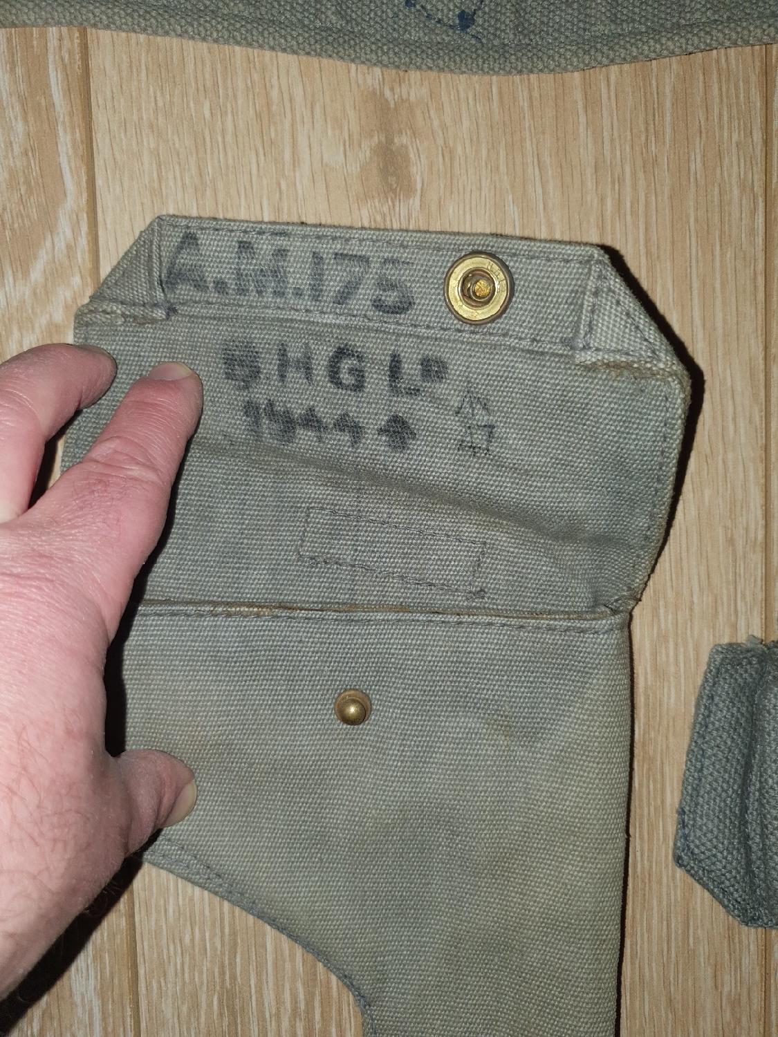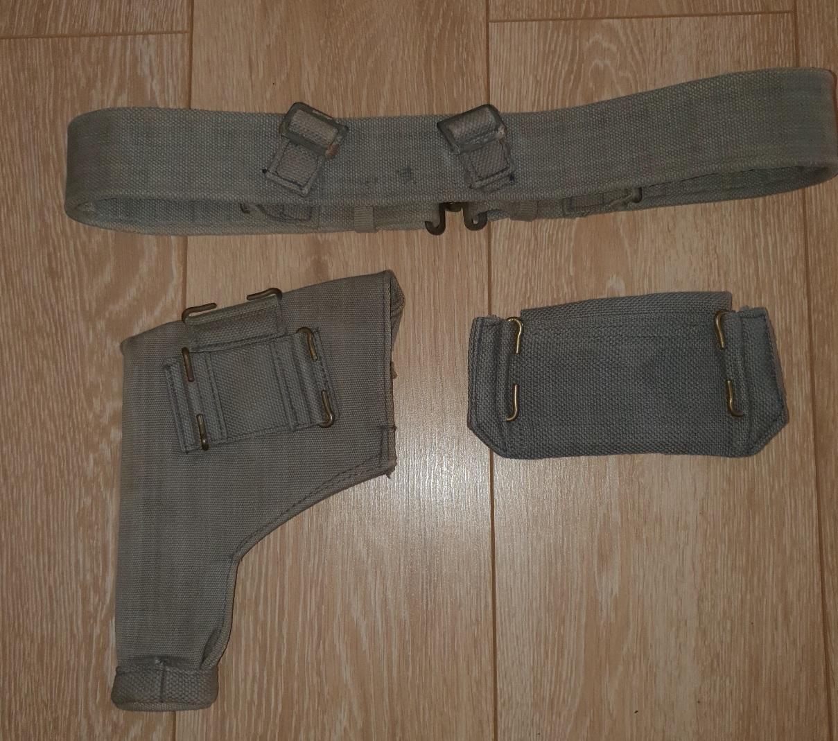 Etui de 1944. Ceinturon économique de 44, Etui à cartouches de 42. Je donne une paire de guetrons belge après guerre copié du modèle raf (équivalent taille 3 anglaise) port offert.